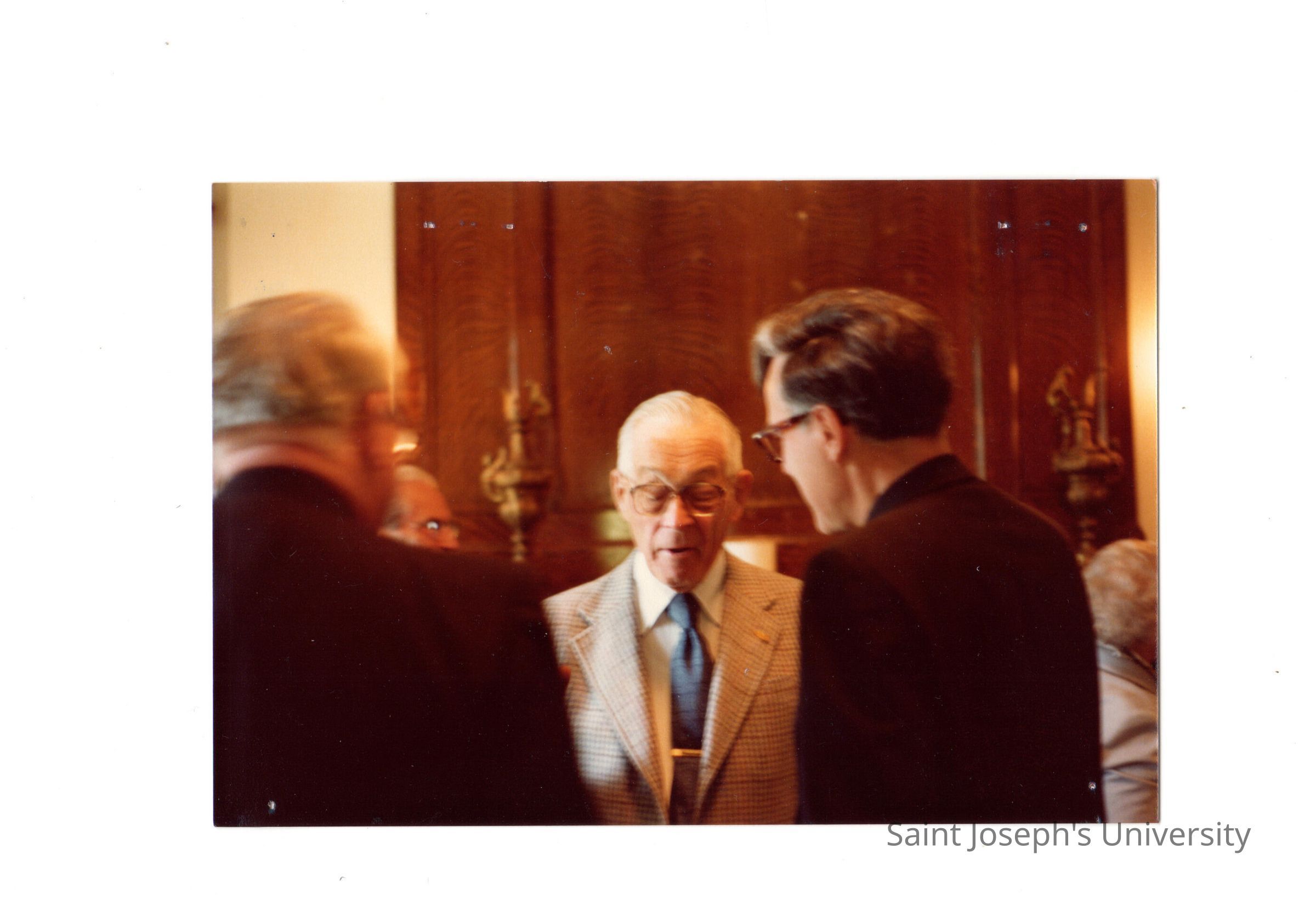 Alumni reunion of class of 1931 held on May 16, 1981. Two views of alumni attending reception, including Donald I. MacLean, S.J. attending reception.