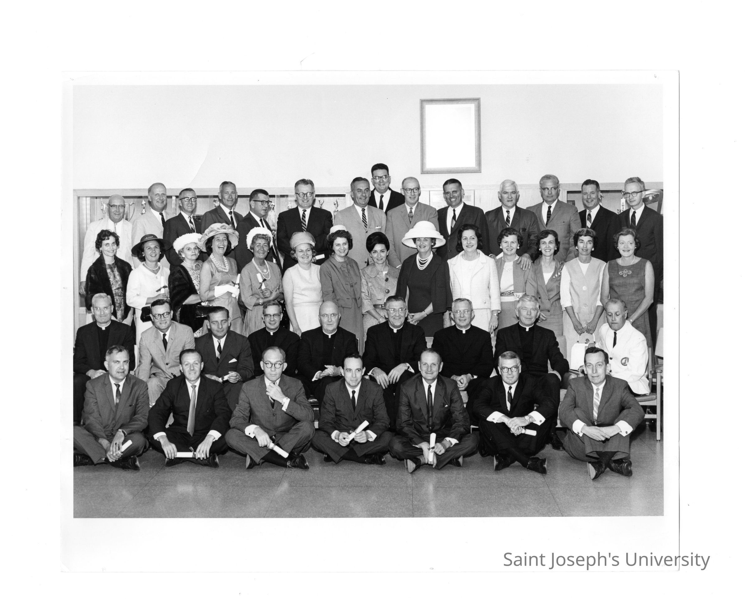 Alumni from class of 1939 and their spouses at reunion, held June 6, 1939. Included are Michael Smith, S.J., H. Baum, S.J., William Maloney, S.J., L. McHugh, S.J., Matthew Sullivan, S.J., Hilferty, Beichl, Horstmann, Bruckheiset, Travers, Brady, BolesEntry/Object ID