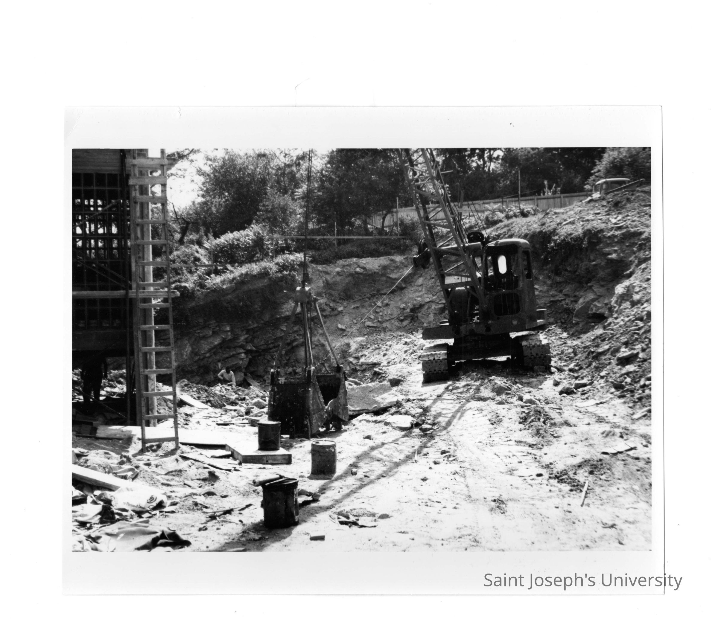 Bulldozer next to construction site of Bellarmine.