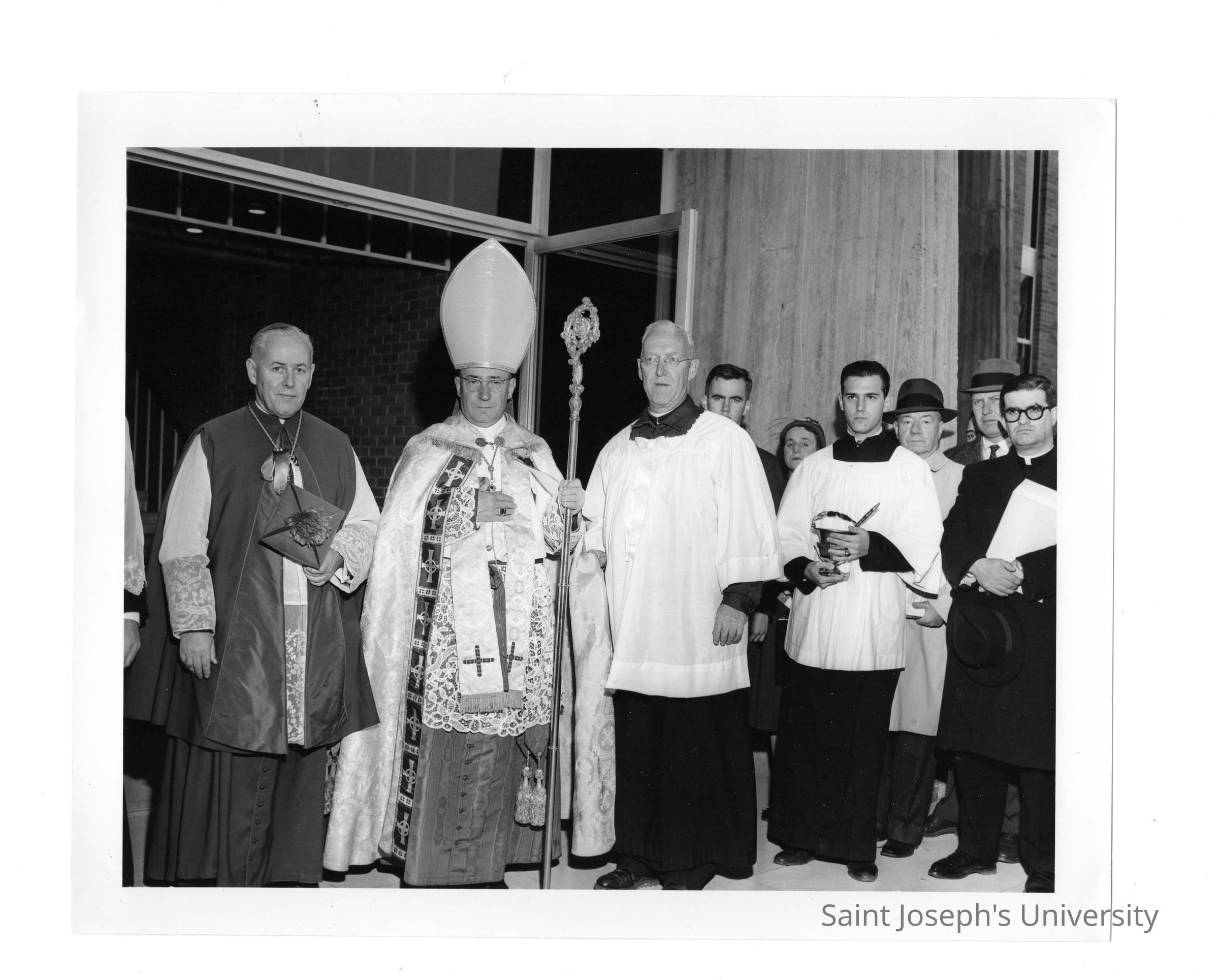 Bellarmine dedication with Bishop McShea, Papal Nuncio, and J. Joseph Bluett, S.J.