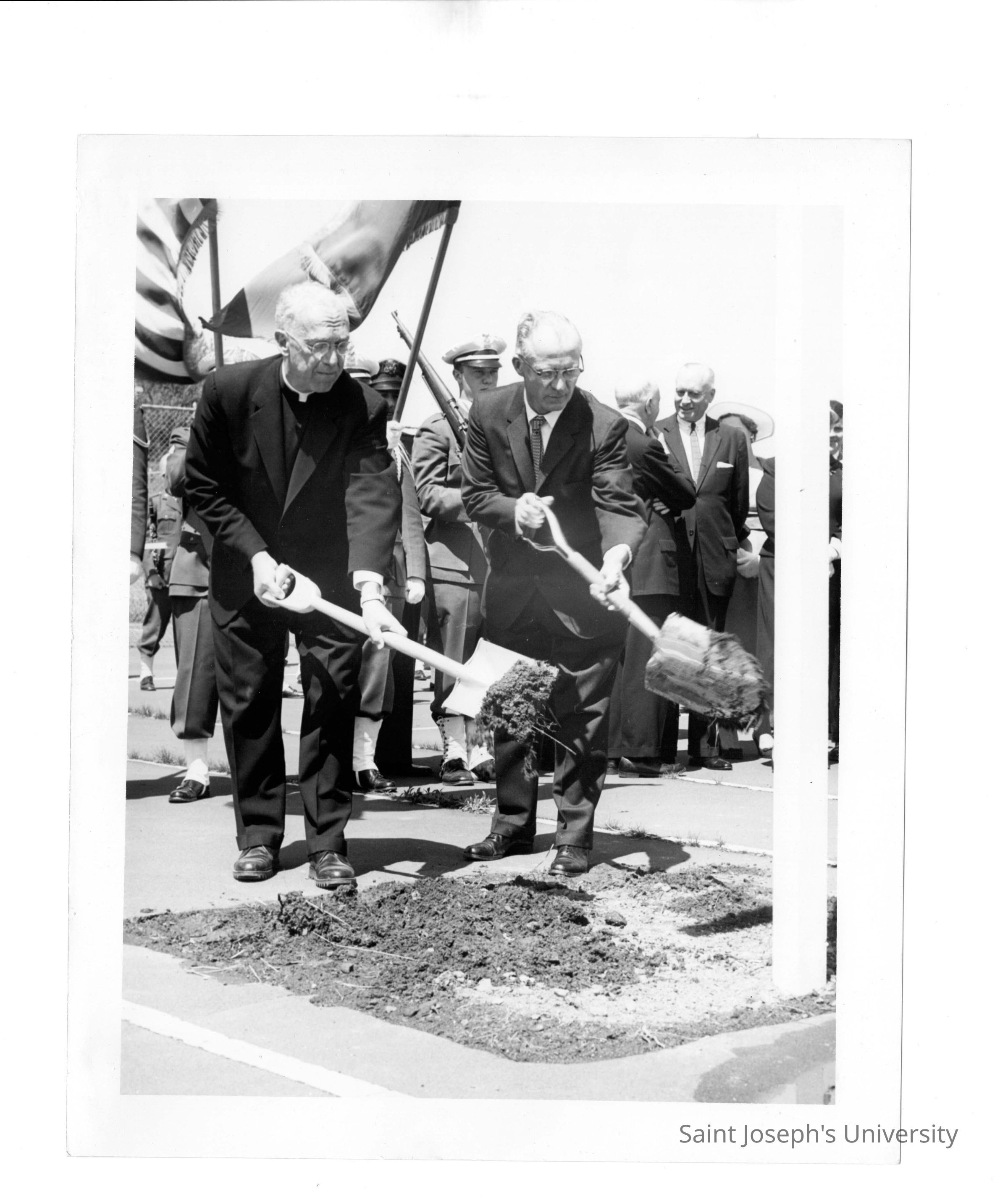 Bellarmine groundbreaking with J. Joseph Bluett, S.J., and Joseph P. Tully (class of 1915).