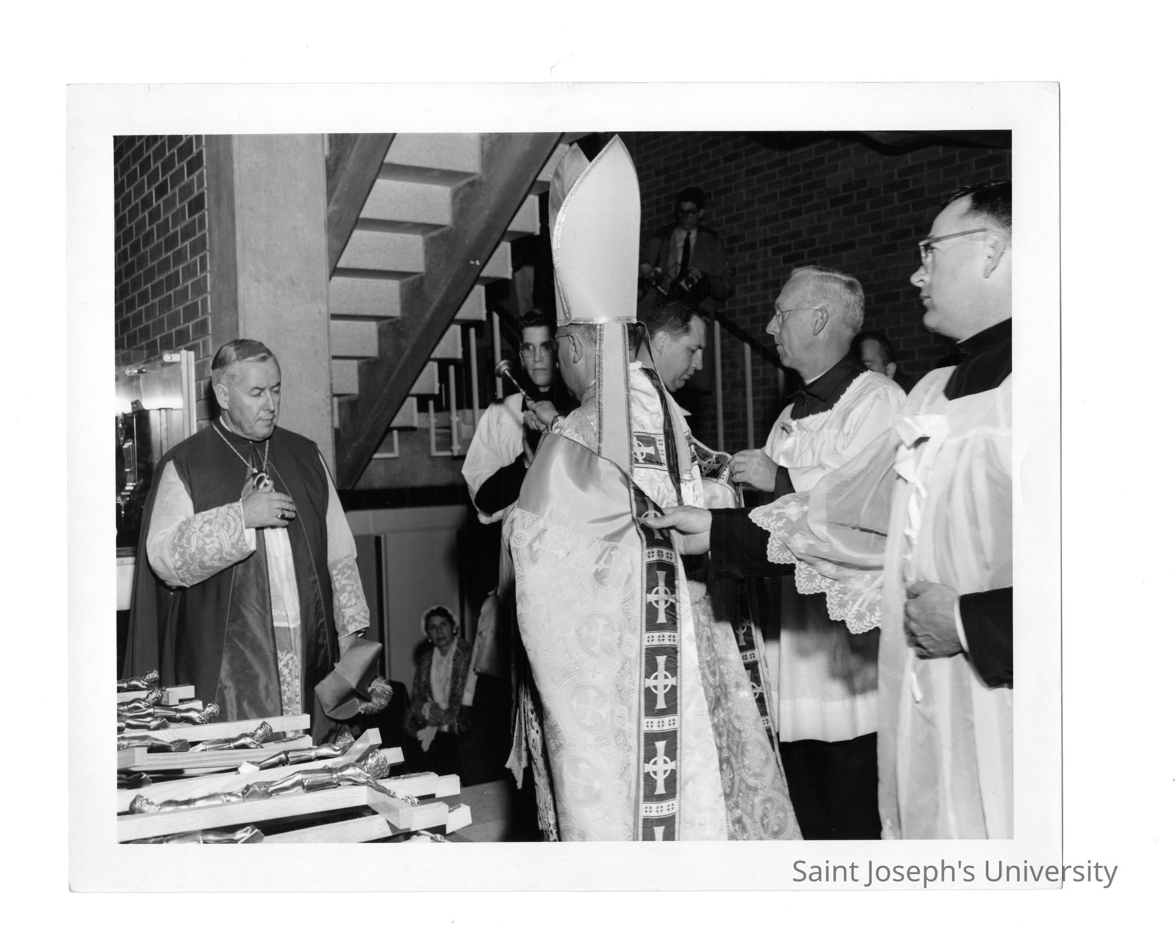 Bellarmine dedication with J. Joseph Bluett, S.J., Egidio Vagnozzi, and Paul F. X. Leary, S.J.