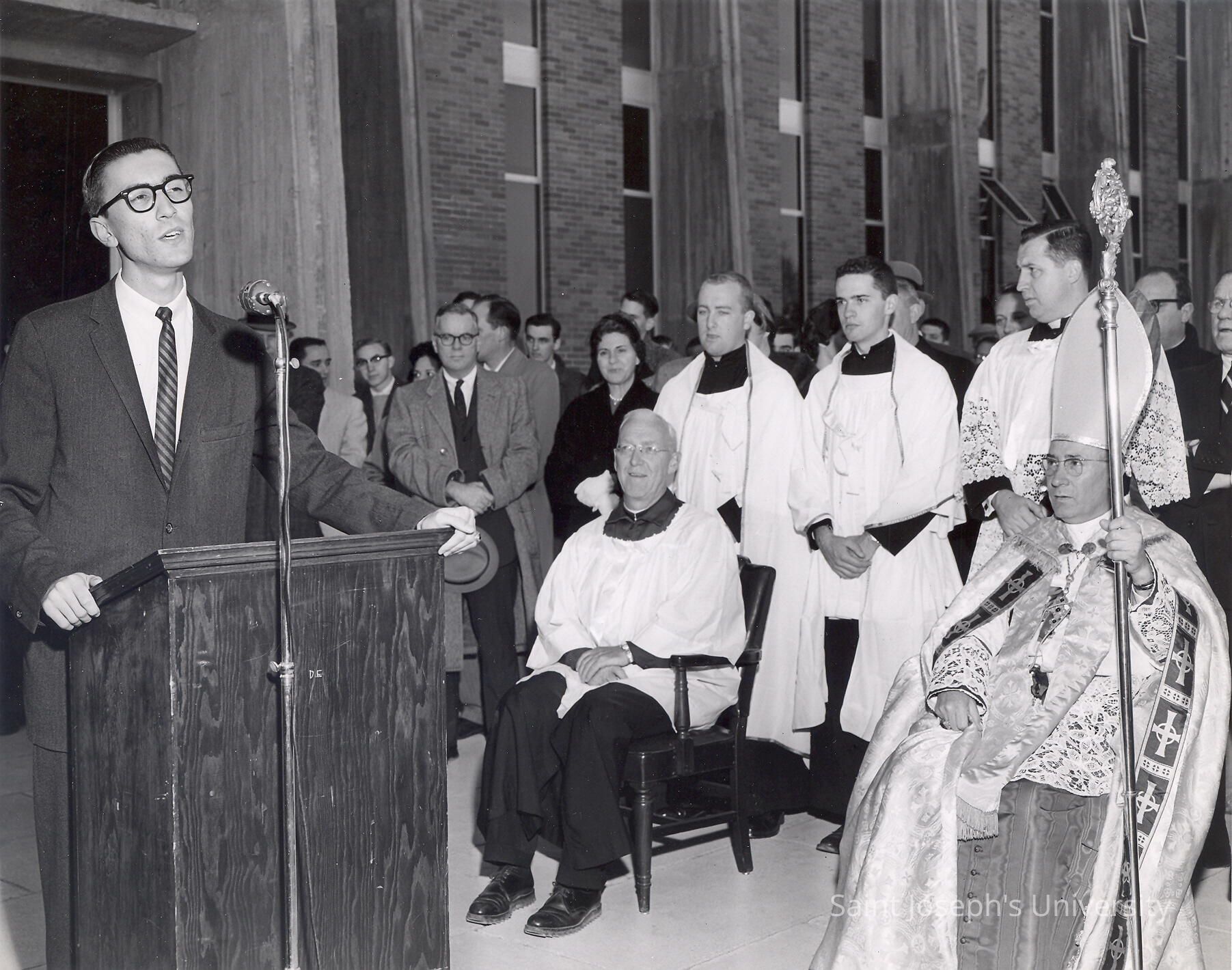 Bellarmine dedication with Michael O'Pake (class 1961), J. Joseph Bluett, S.J., Rev. Egidio Vagnozzi and others.