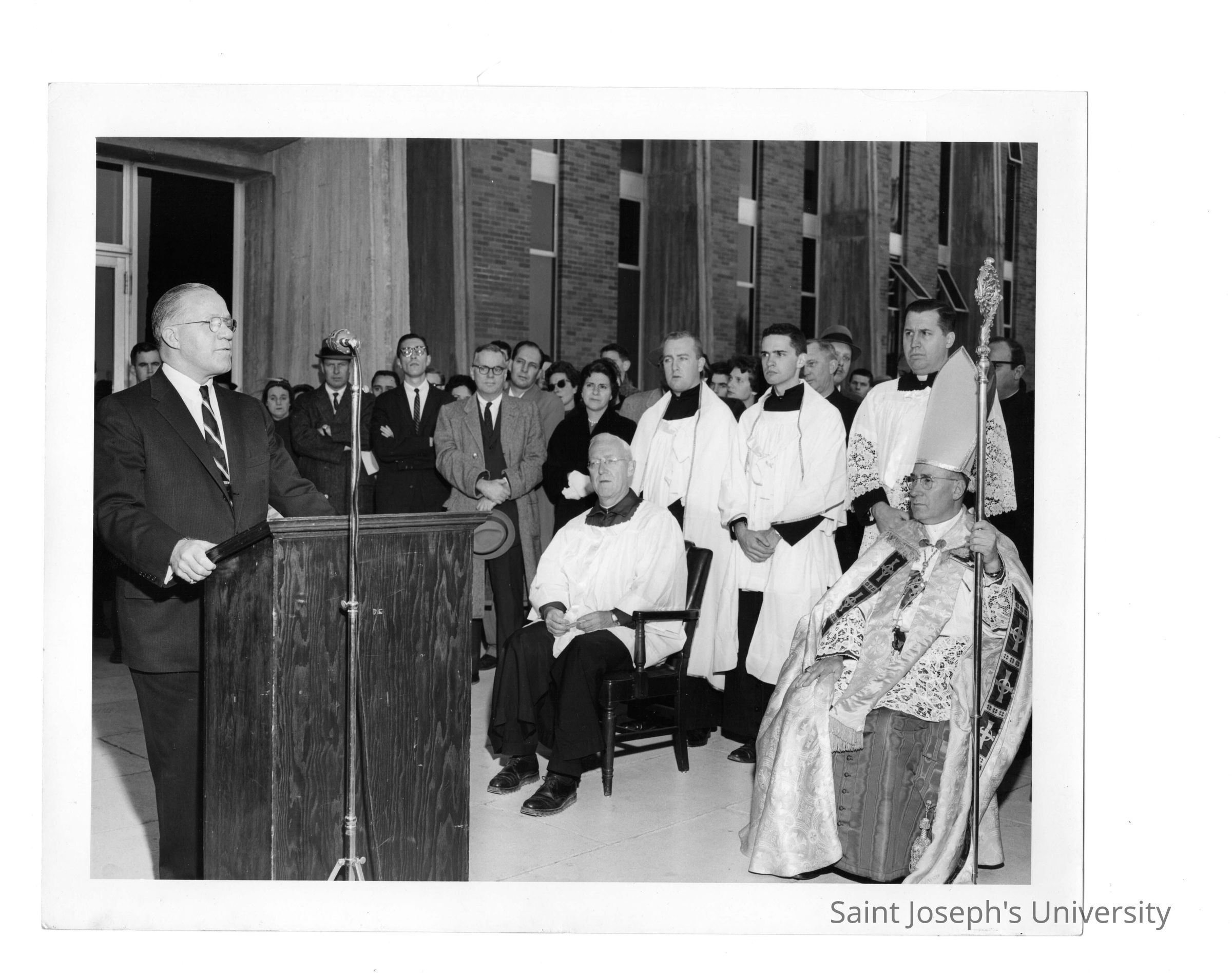 Bellarmine dedication with John A. Murphy (class 1919), J. Joseph Bluett, S.J., and Rev. Egidio Vagnozzi and others.
