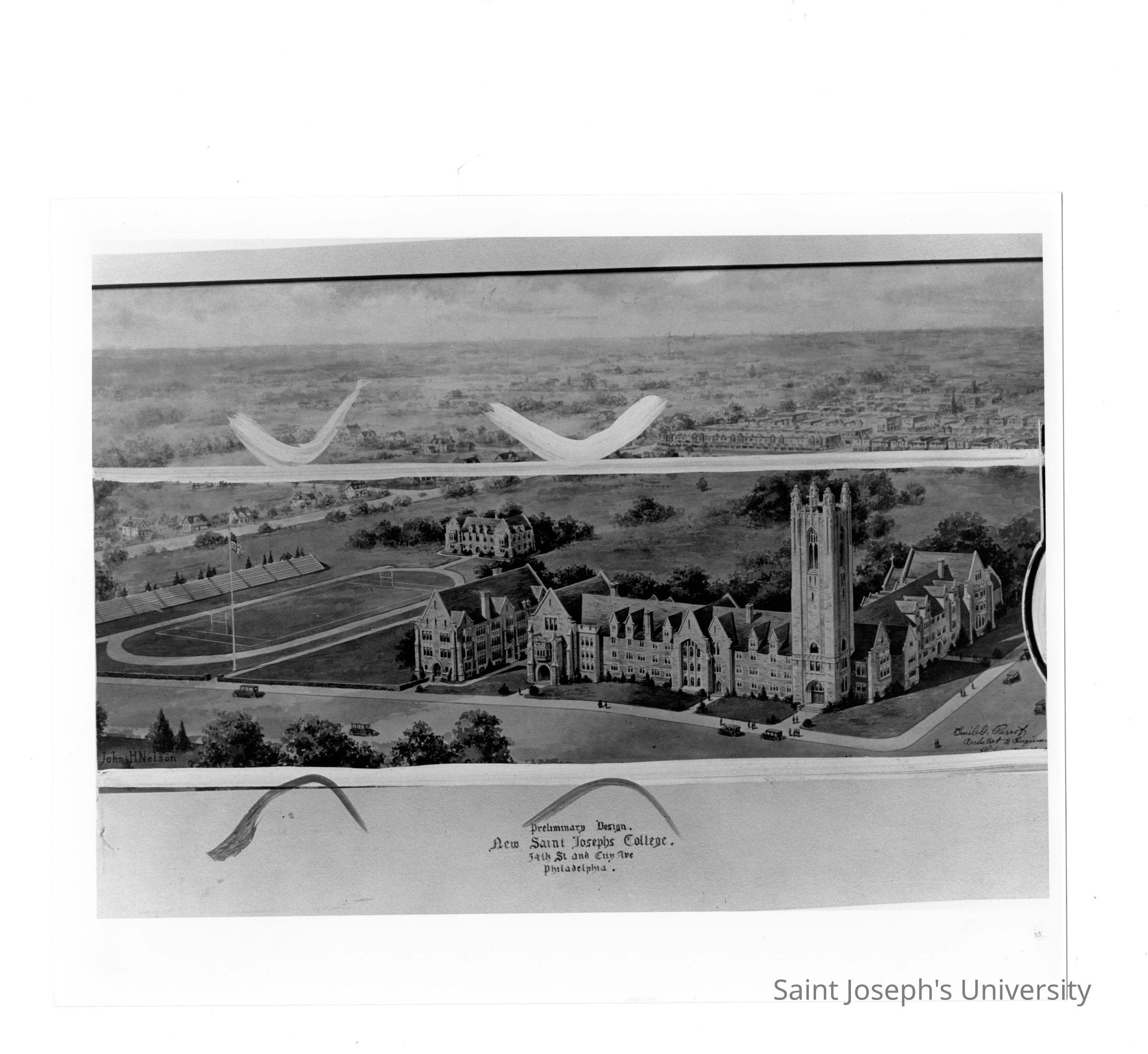 Preliminary design for Saint Joseph's College on new City Avenue site near Overbrook.