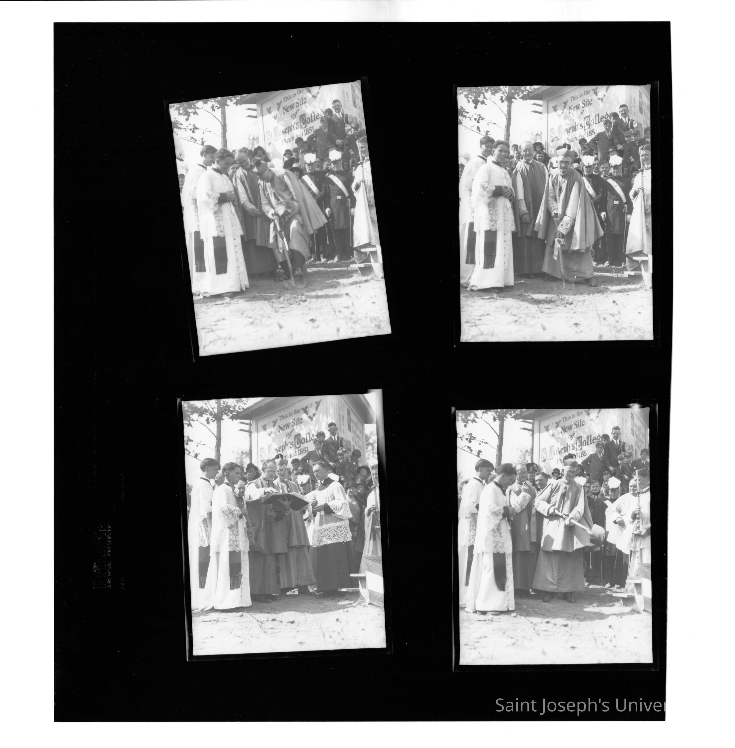 Groundbreaking ceremonies for new Saint Joseph's College on City Avenue in Overbrook and neighborhood scenes.