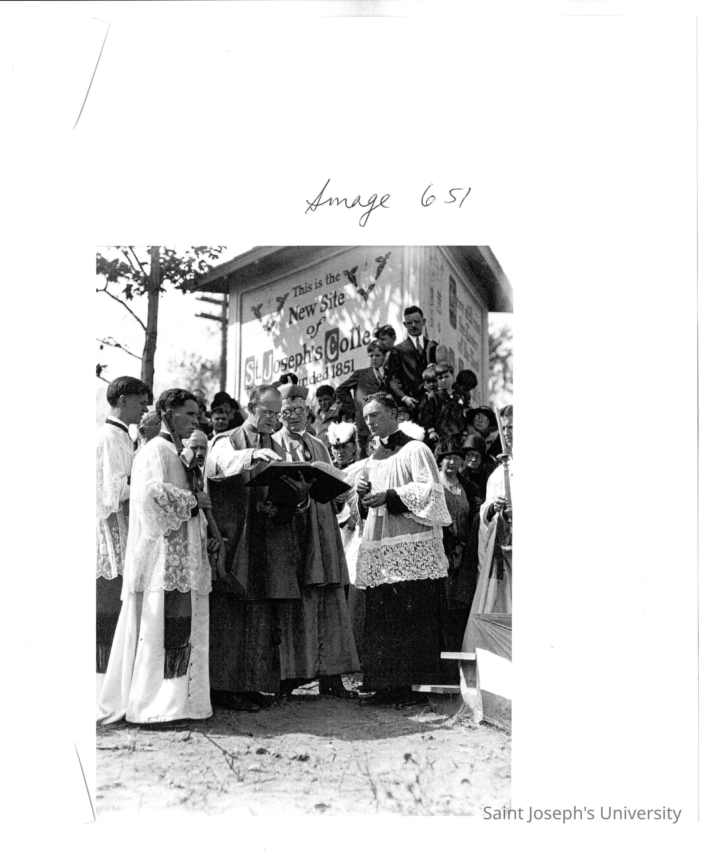 Groundbreaking ceremonies for new Saint Joseph's College on City Avenue in Overbrook and neighborhood scenes.