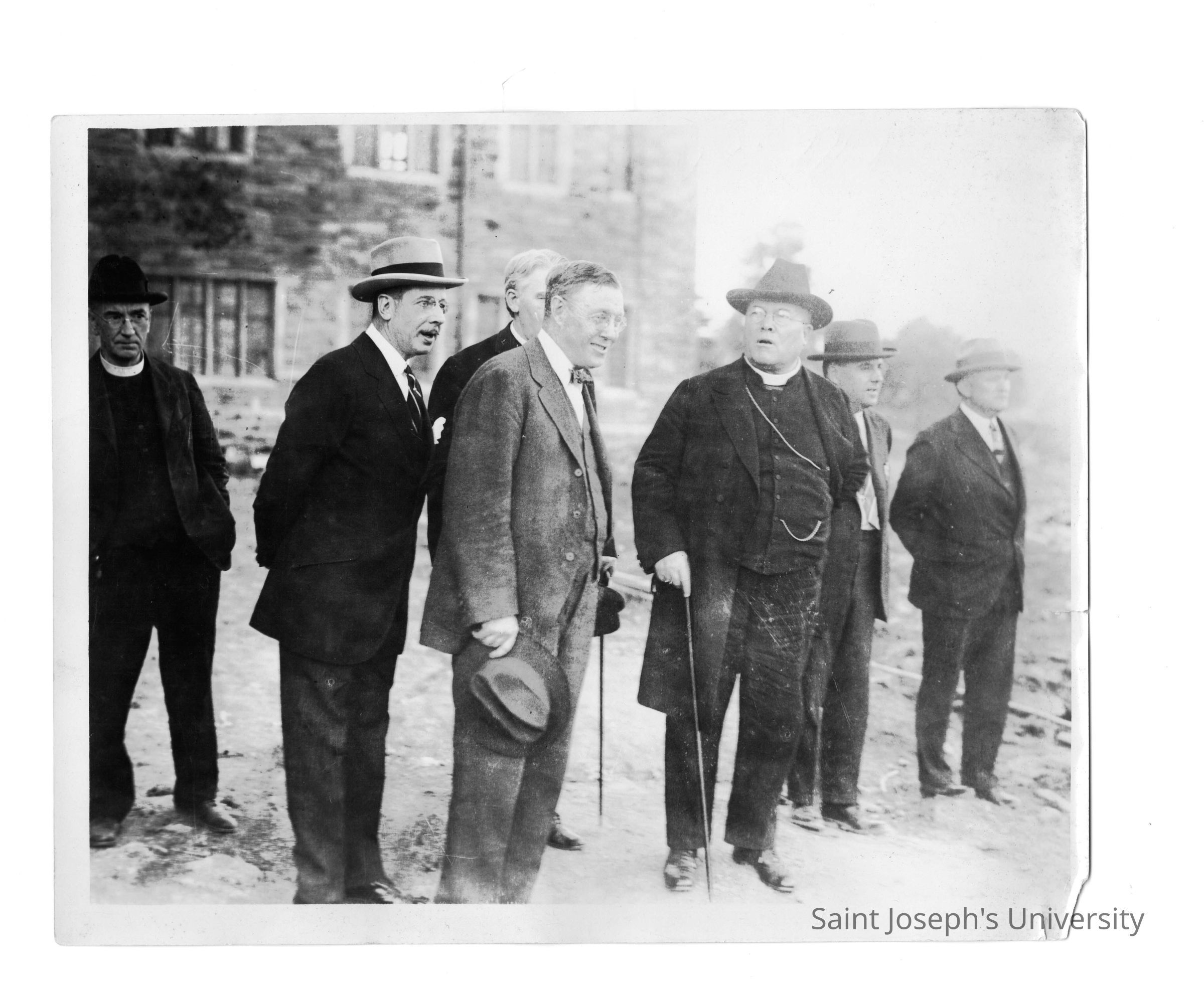 Joseph C. Trainer, Dennis Cardinal Dougherty and others discussing Barbelin building at new site for college on City Avenue in Overbrook.