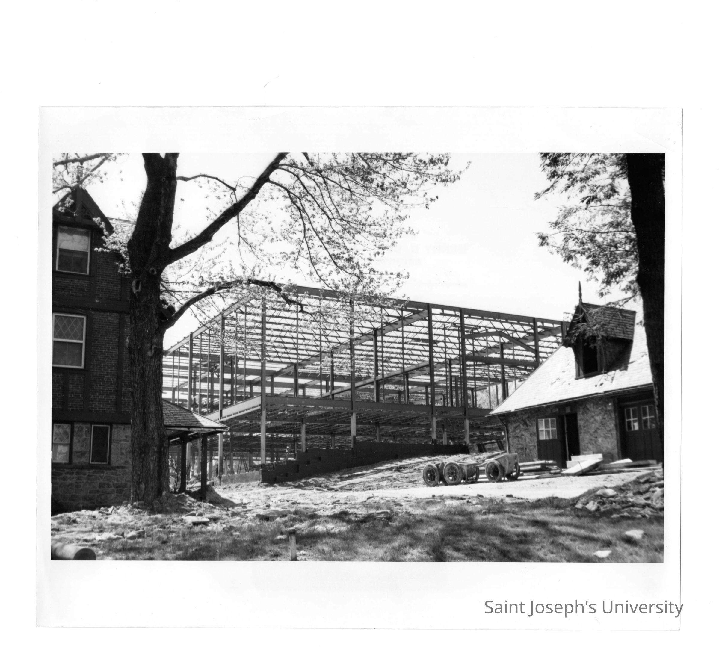 View of Campion under construction with Simpson Hall and carriage house in foreground.