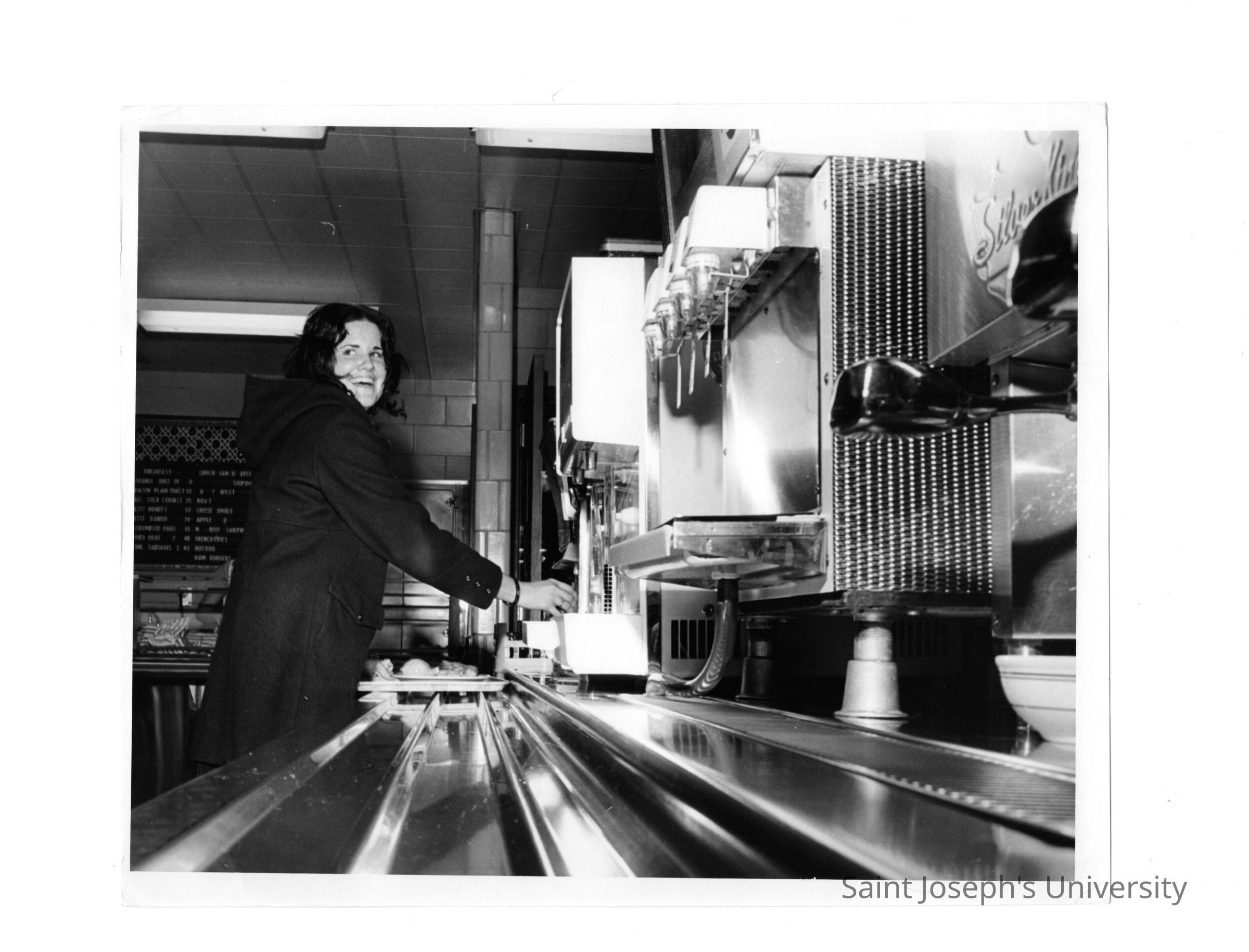 Female student getting meal in Campion cafeteria.