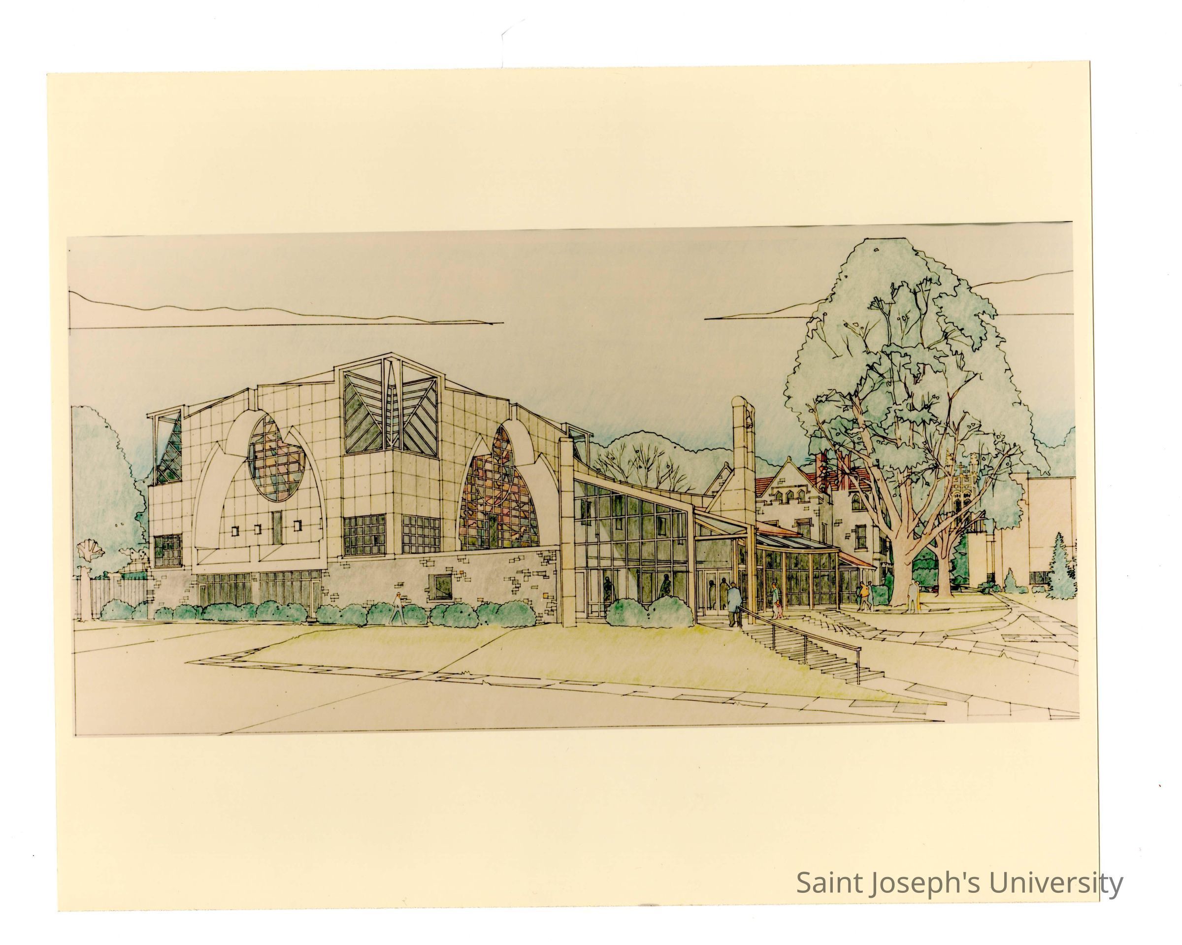 Architect's drawing of exterior of Saint Joseph's Chapel.