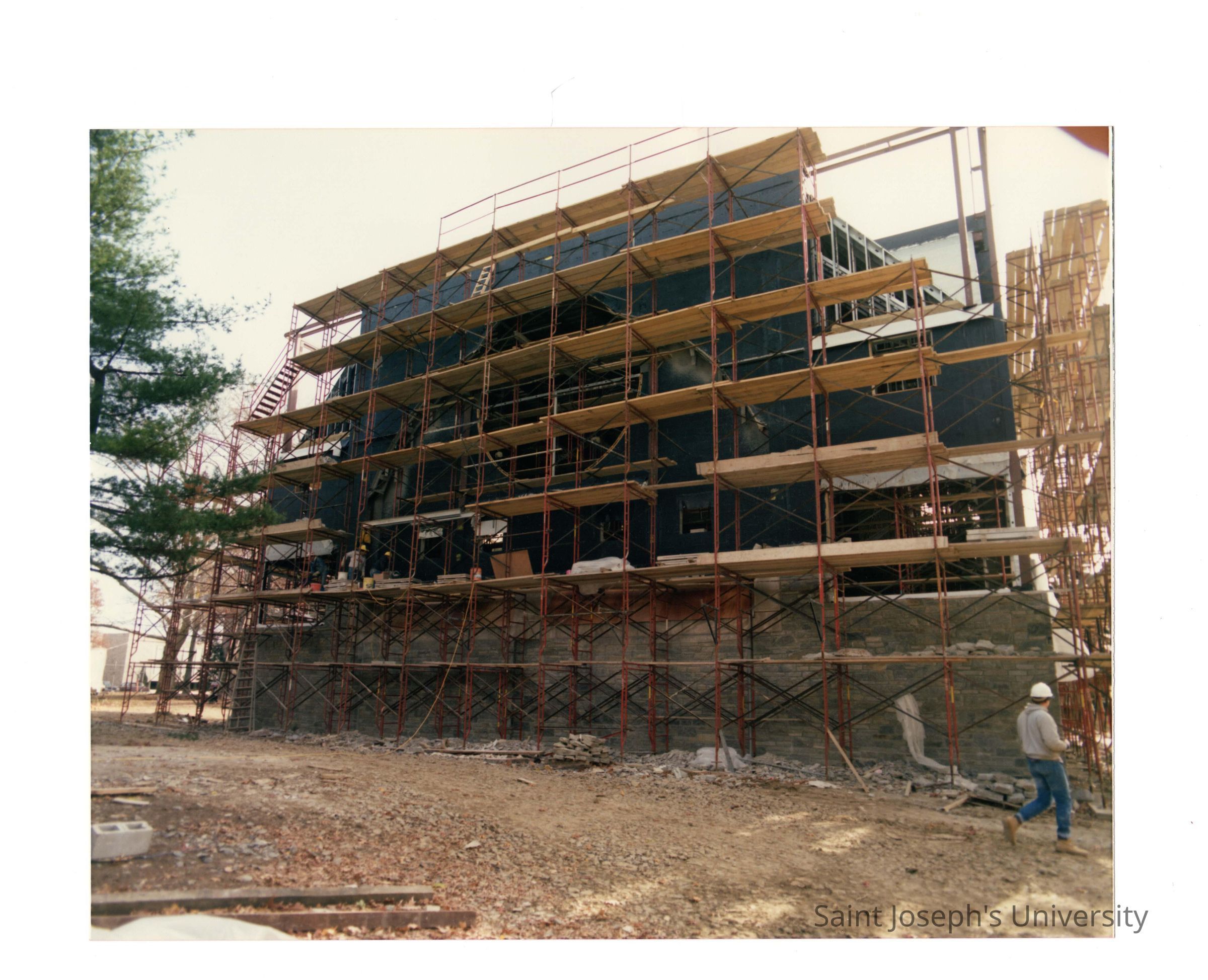 Exterior of view of construction of Chapel of Saint Joseph.