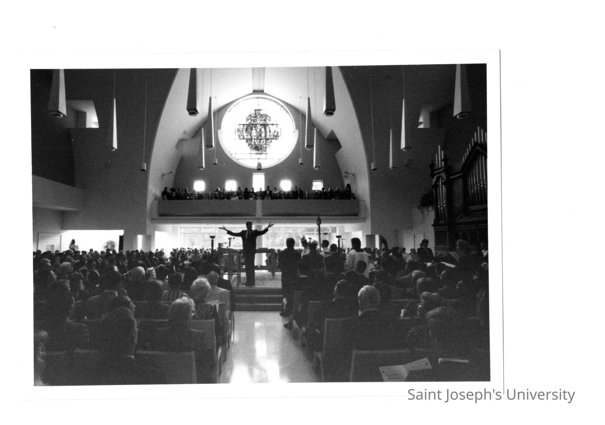 Dedication of Chapel of Saint Joseph, interior view of people in attendance.