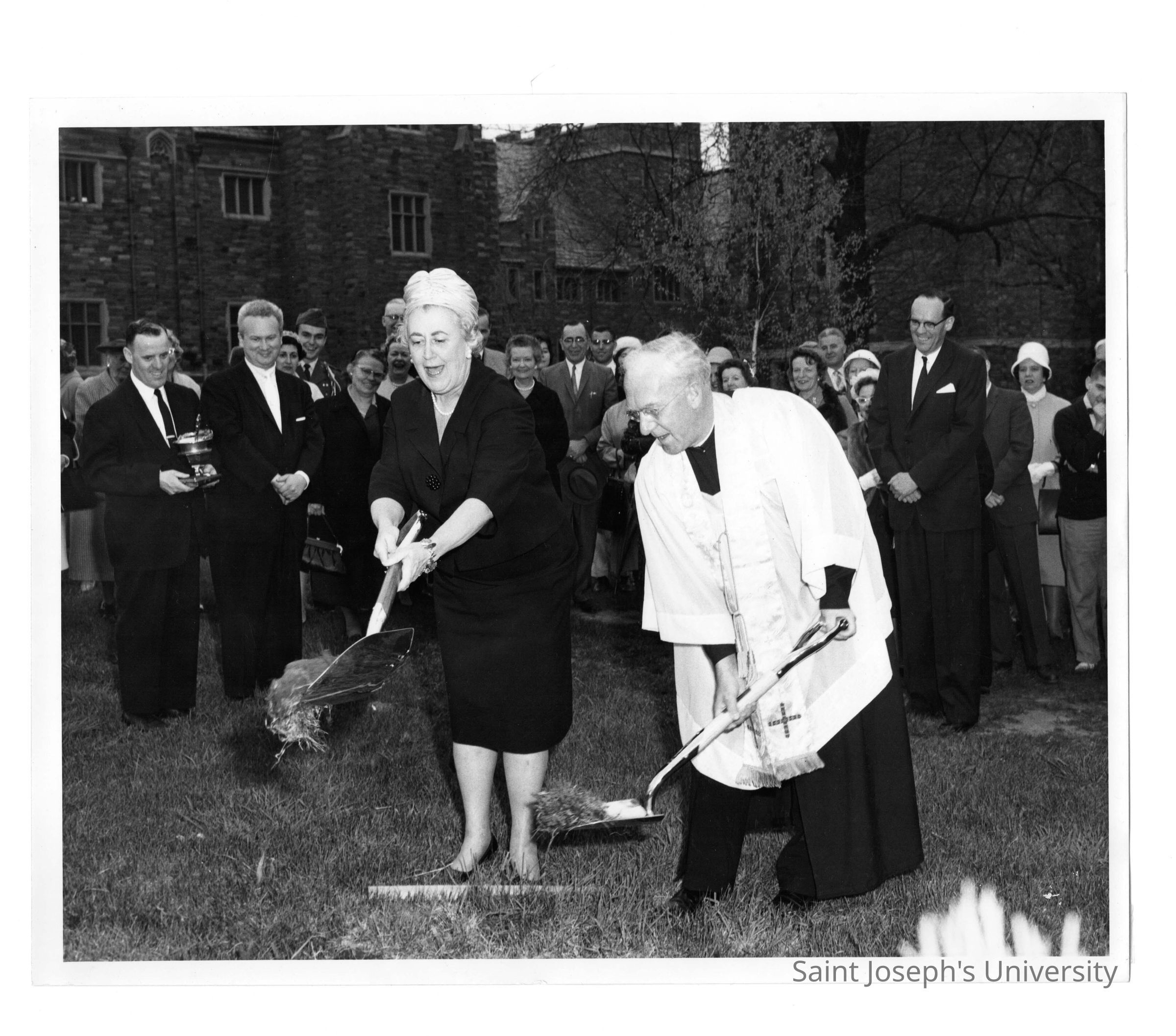 Groundbreaking for Drexel Library with J. Joseph Bluett, S.J., and Honorable Kathryn Granahan, Member U.S. House of Representatives