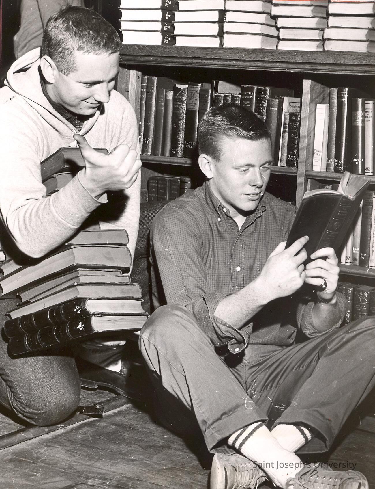 Student seated to the right is Joseph Oakes III from the class of 1964. Confirmed in a meeting with Kristen Ziegler from University Advancement. 9/6/2014Made/Created