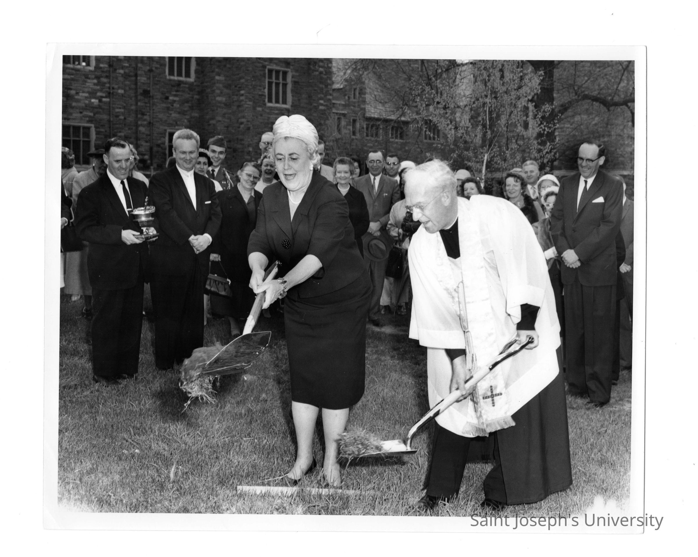 Groundbreaking for Drexel Library with J. Joseph Bluett, S.J., Honorable Kathryn Granahan, Member, U.S. House of Representatives, Brother Boyle, Frank X. Duff, Jr., Frank Lalley