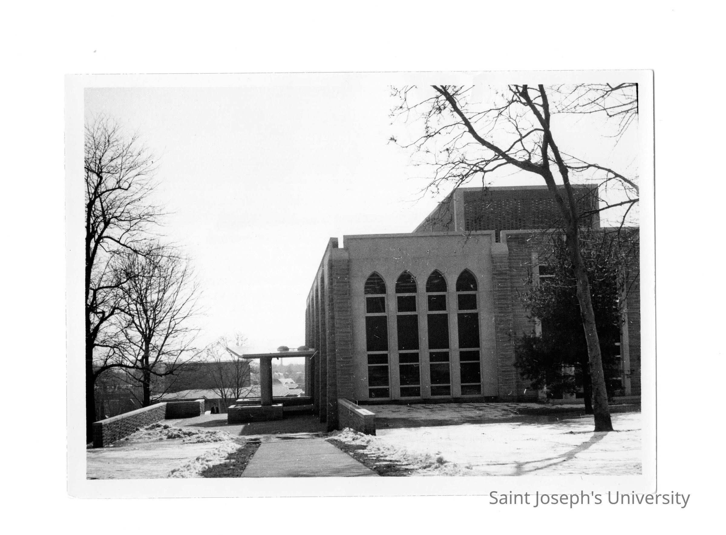 Exterior side view of Drexel Library with Field House (?) in distant background.