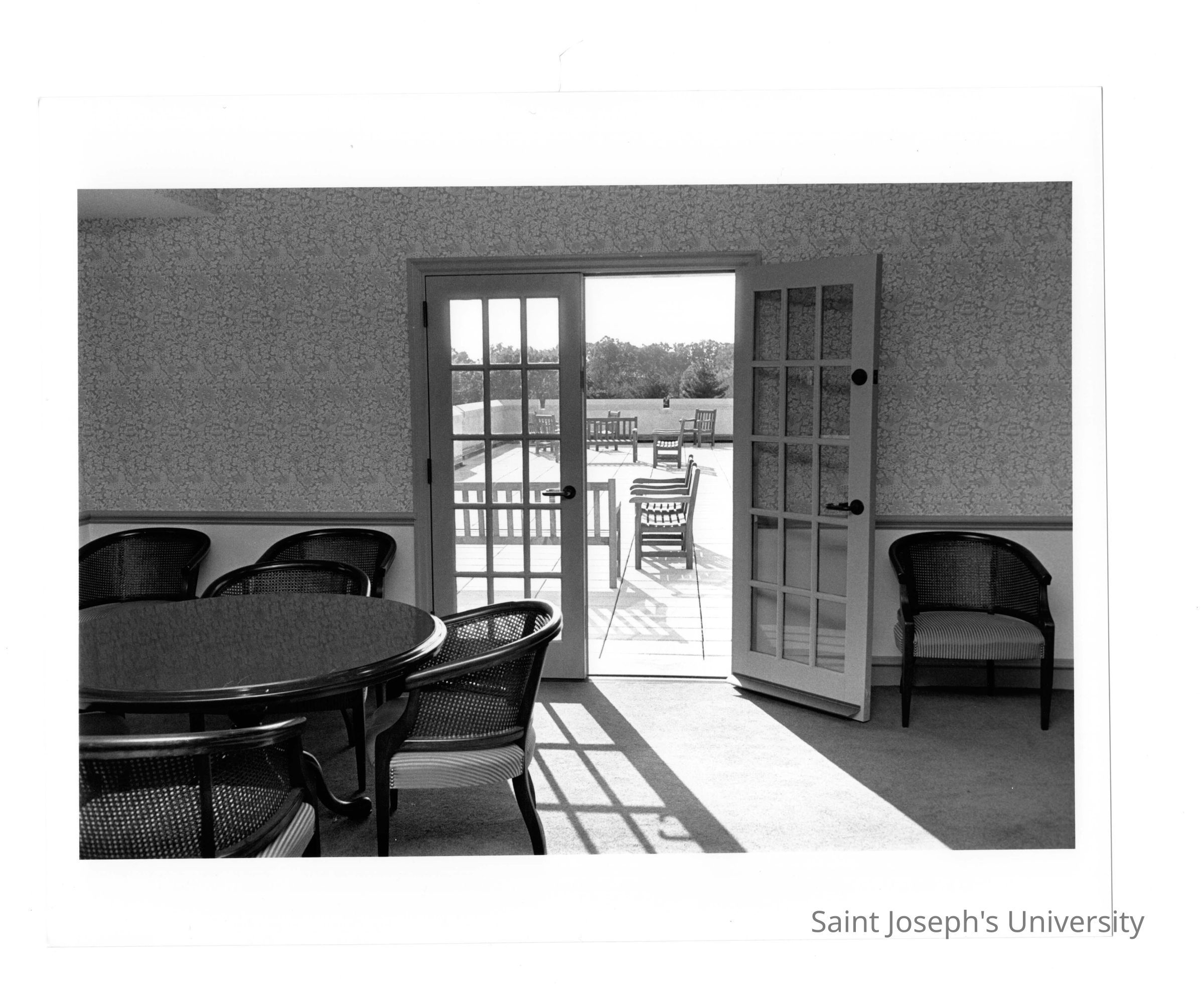 View of outdoor deck of Haub Executive Center, McShain Hall.