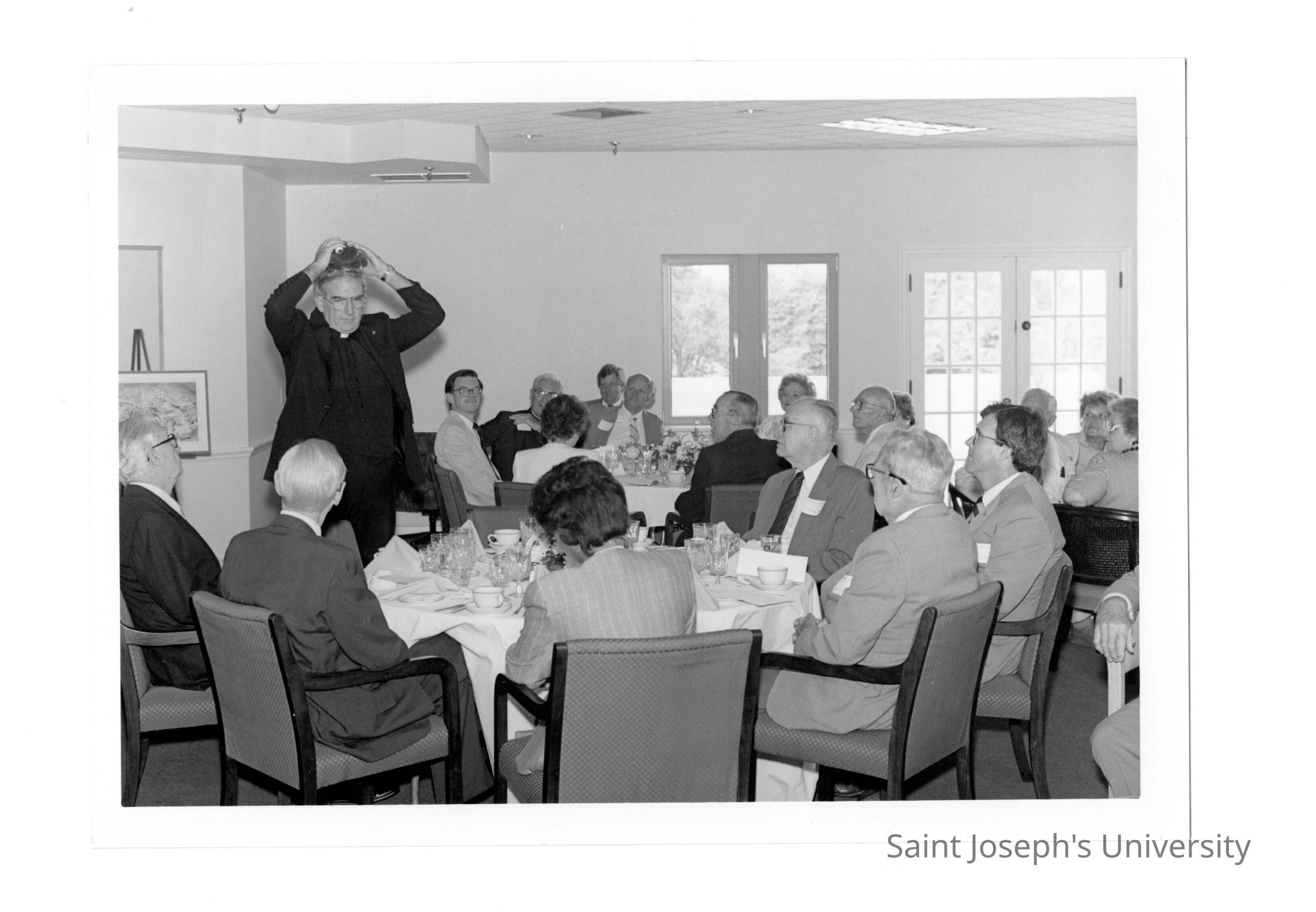 McShain Hall dedication luncheon with Nicholas S. Rashford, S.J. and others, August 1988.