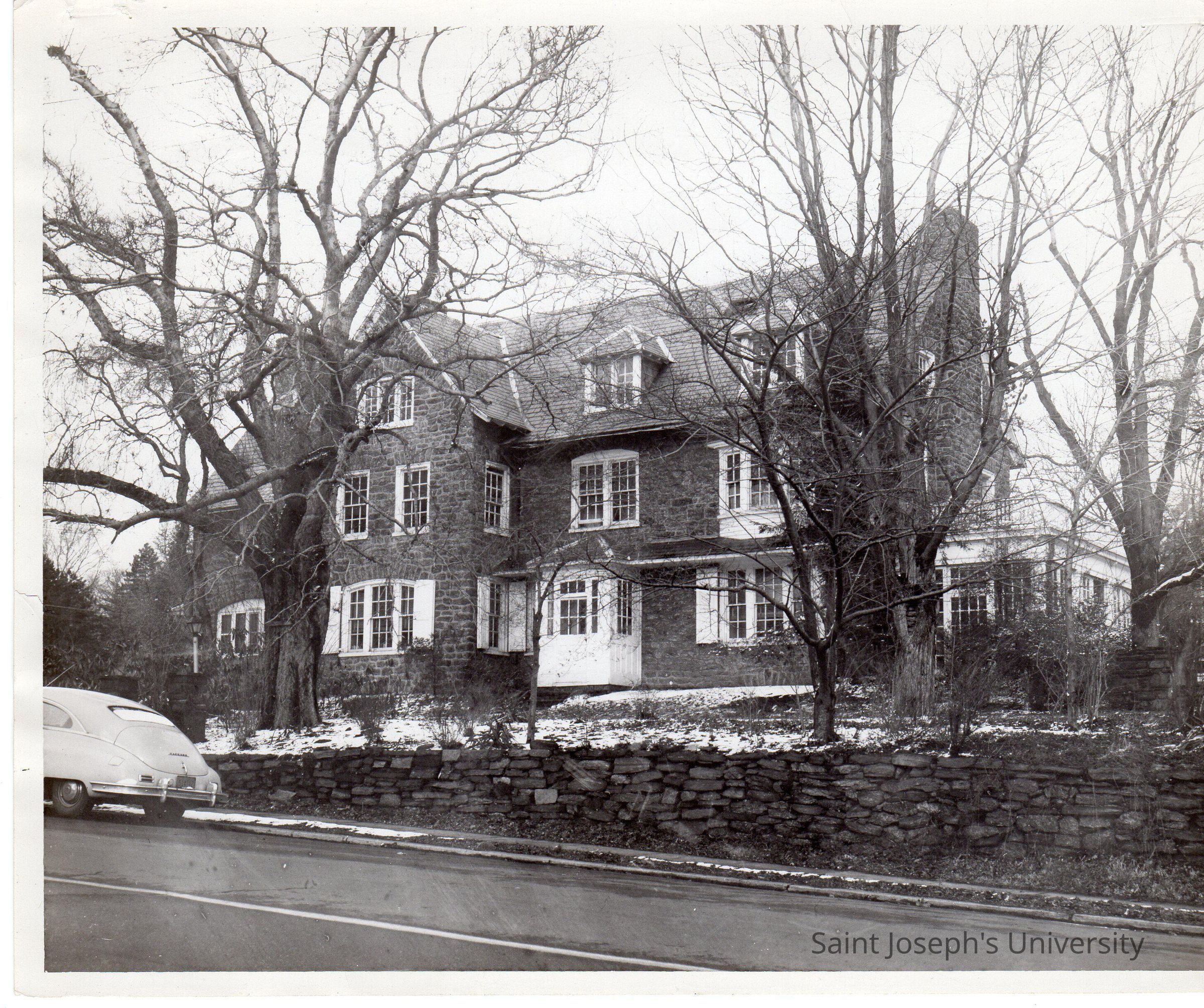 Exterior view of Greaton Hall from Cardinal Avenue with car parked on street.