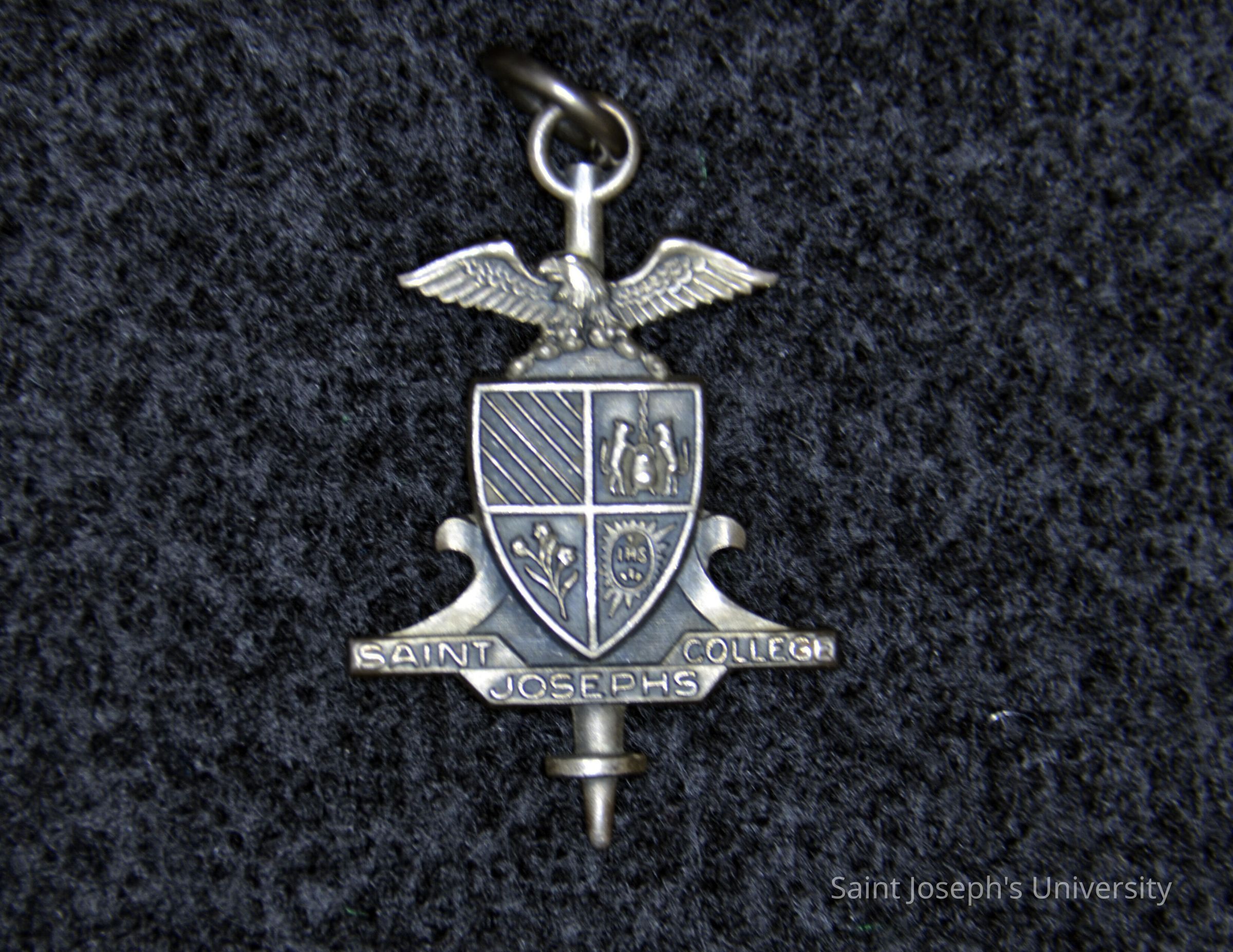 Metal key dated 1951 for a charm bracelet depicting the hawk on top of the SJC shield. Eugene Delaney '58 gave to his wife Patricia.