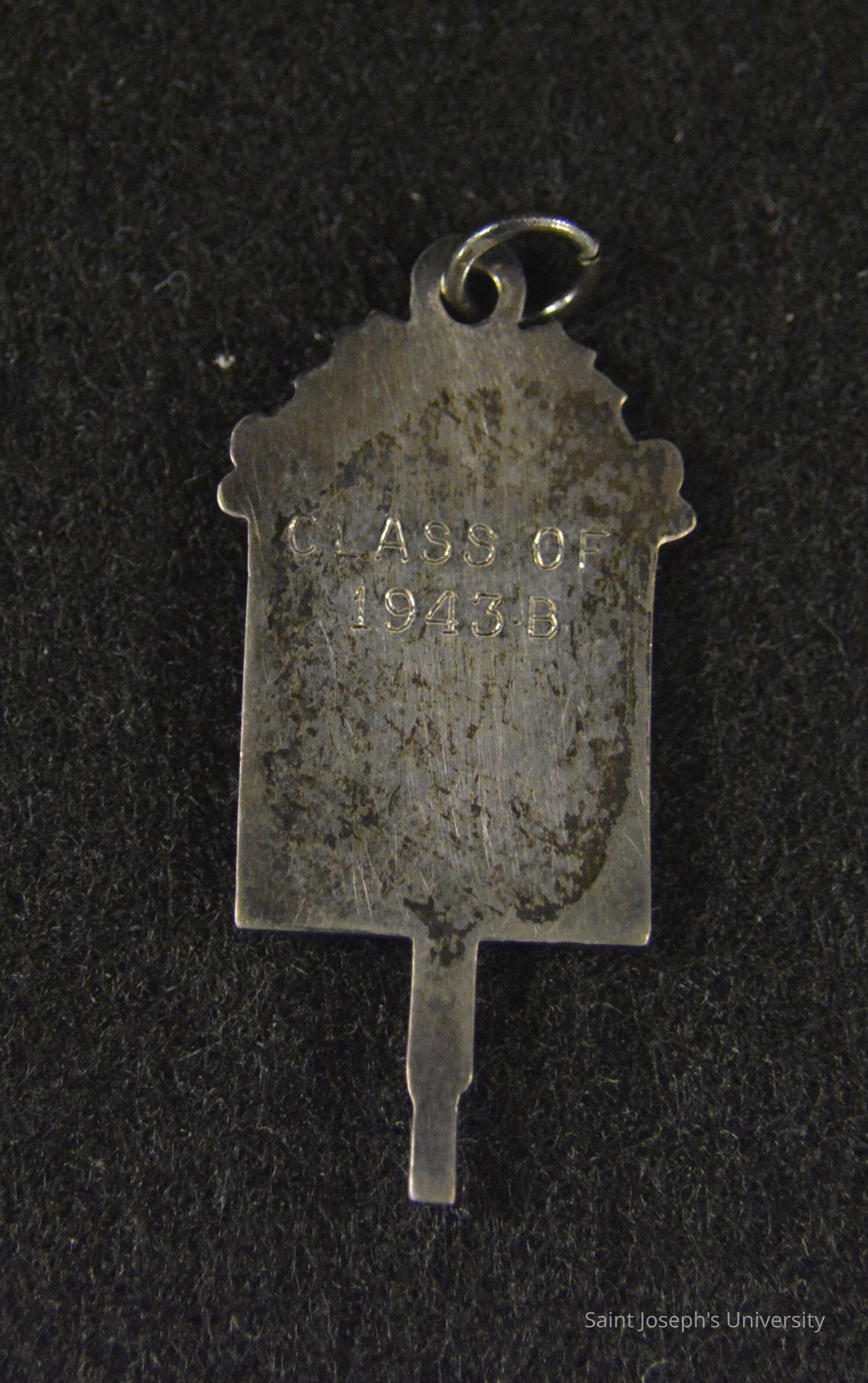 Square shaped Junior Prom key held at the Benjamin Franklin Hotel. The front includes the SJC seal and the back notes "CLASS OF 1943-B."Made/Created
