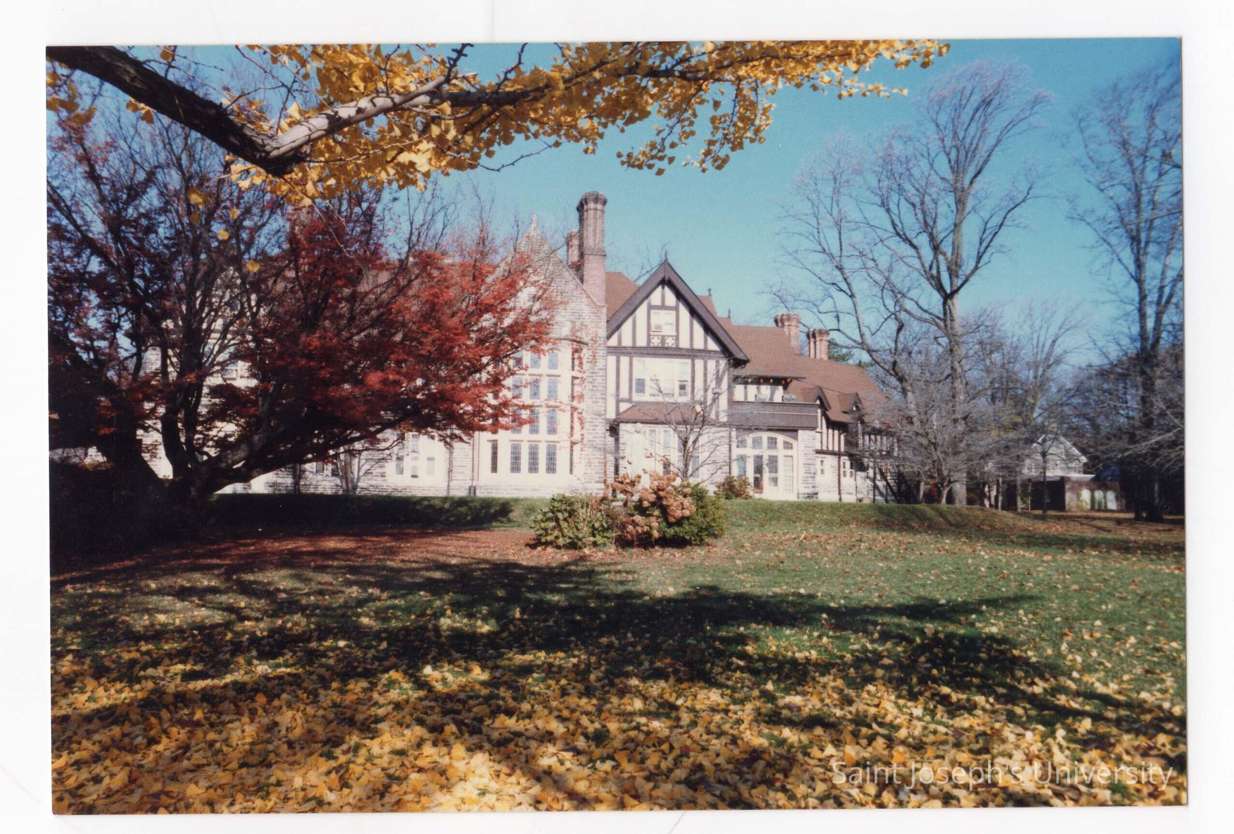 Exterior view of Saint Mary's Hall in autumn.