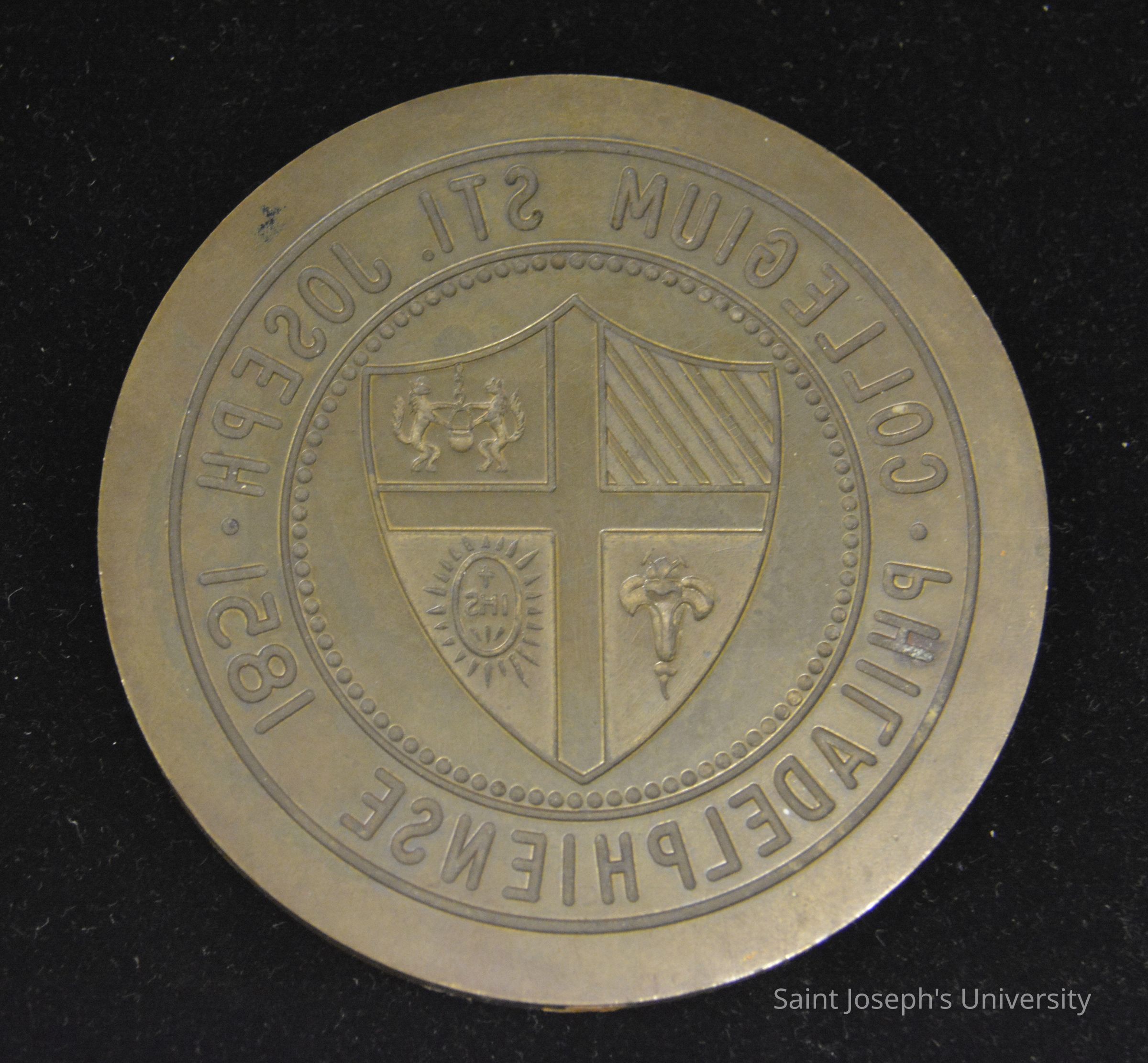A large round metal SJC seal for embossing official documents. The back is plain.