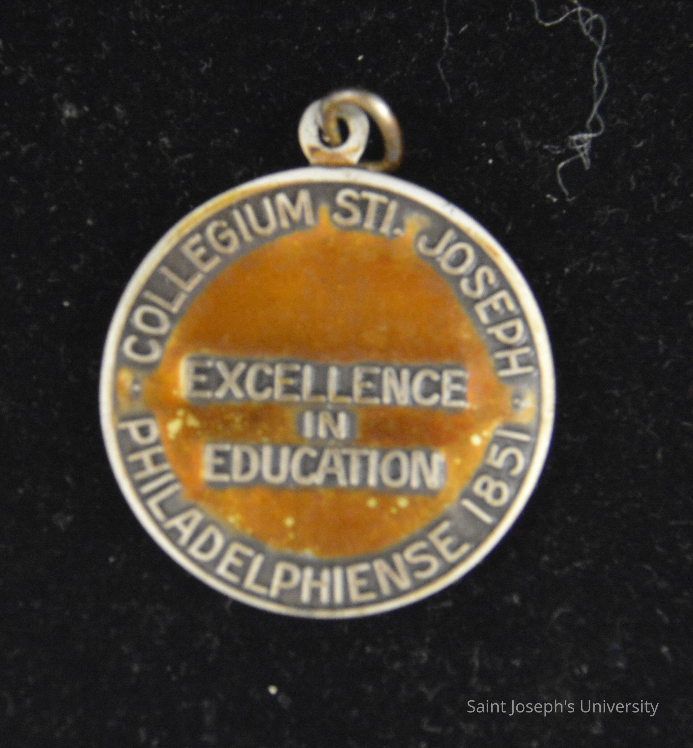 Round medal depicting the bust of William J. Walsh and "WILLIAM J. WALSH MEMORIAL MEDAL." The back notes "COLLEGIUM STI. JOSEPH PHILADELPHIENSE 1851 EXCELLENCE IN EDUCATION."