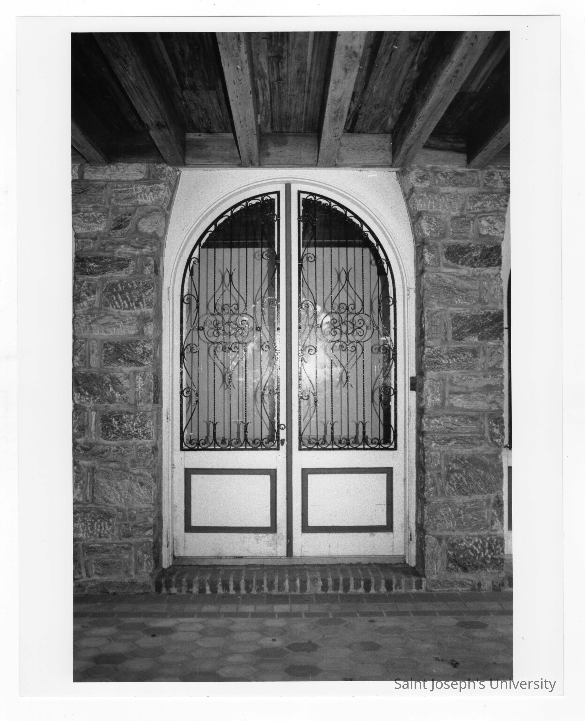 Arcade doors of Boland Hall before conversion to classroom space.