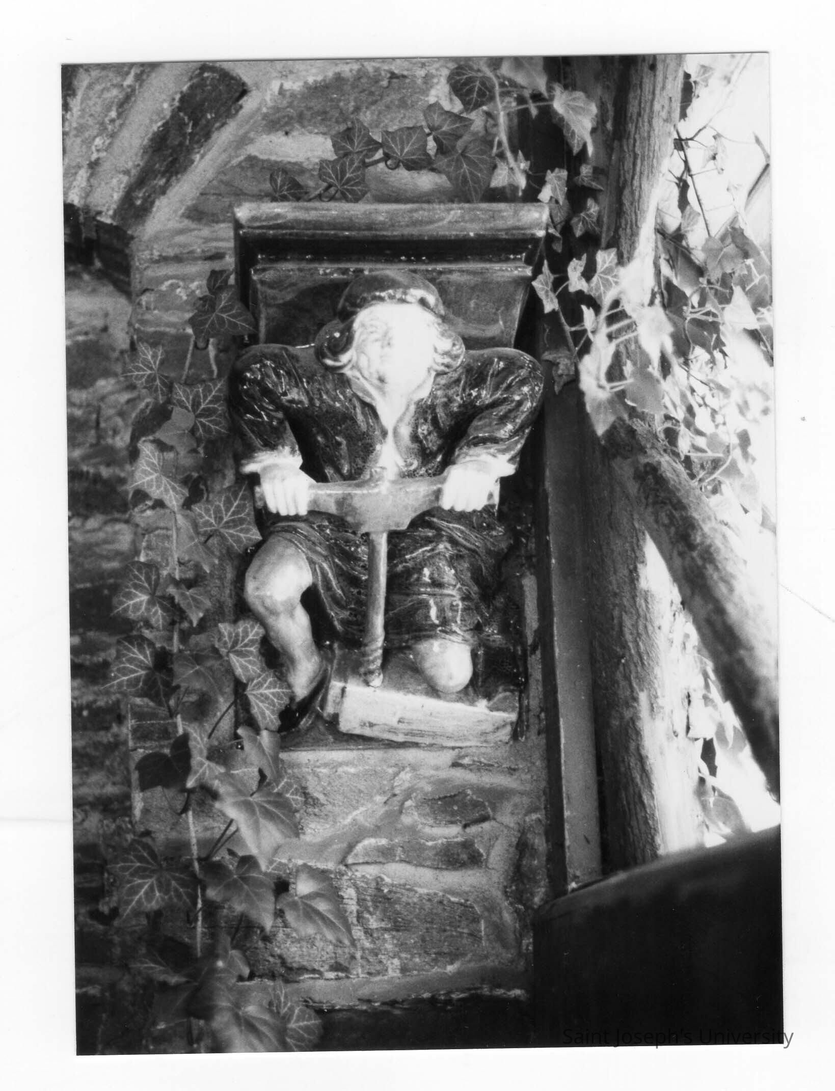 Ceramic sculpture in interior of old gazebo of Boland Hall.