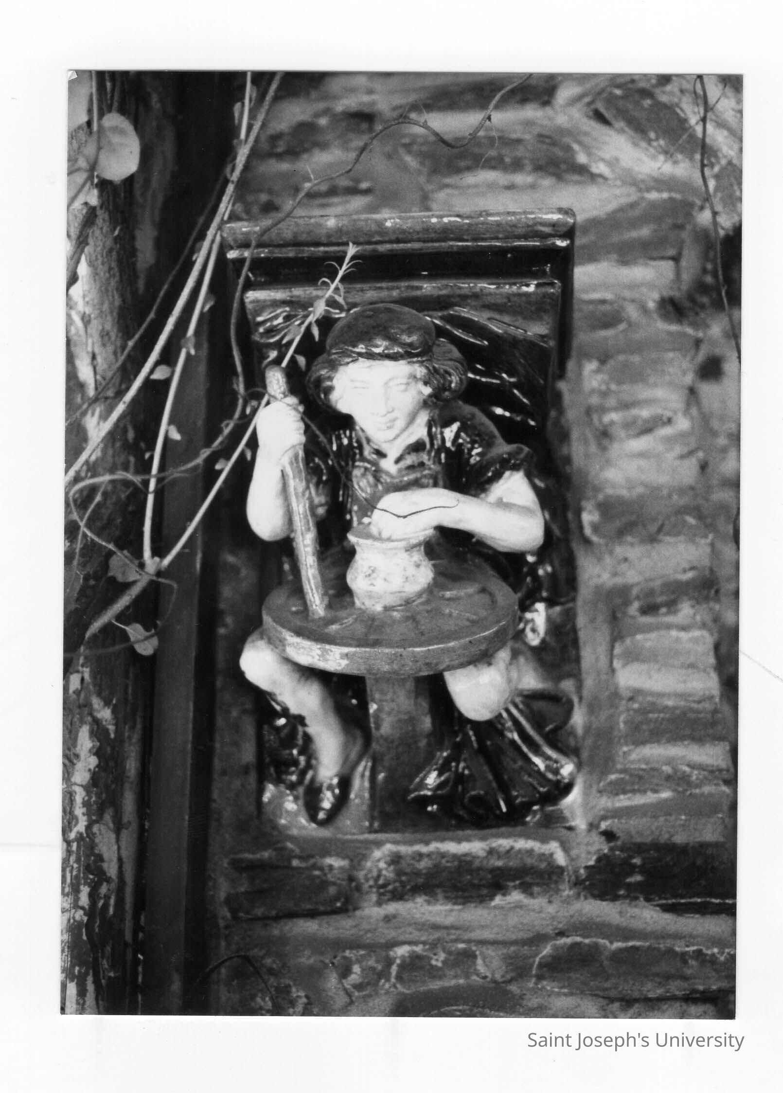 Ceramic sculpture in interior of old gazebo of Boland Hall.