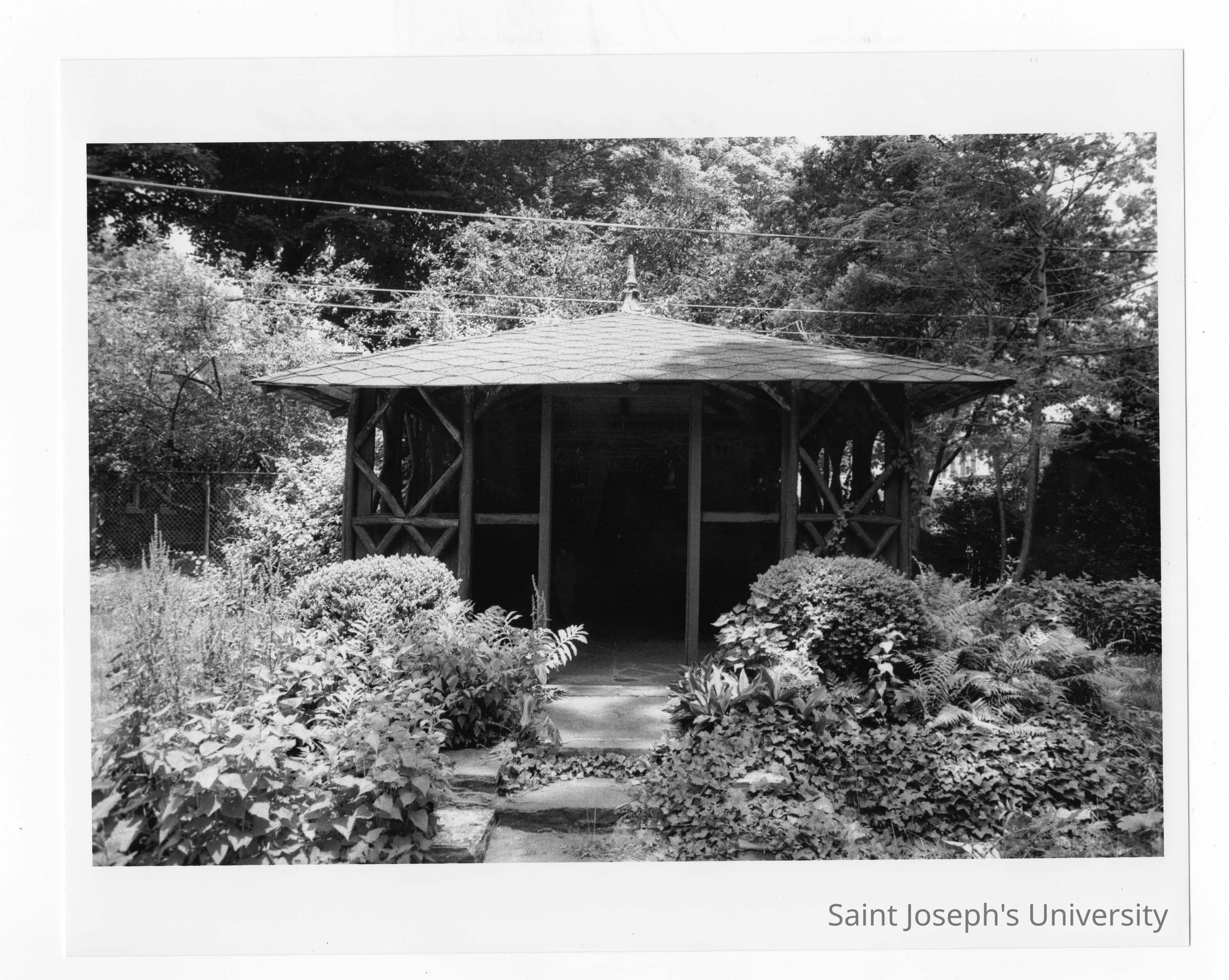 View of front entrance to old gazebo of Boland Hall.