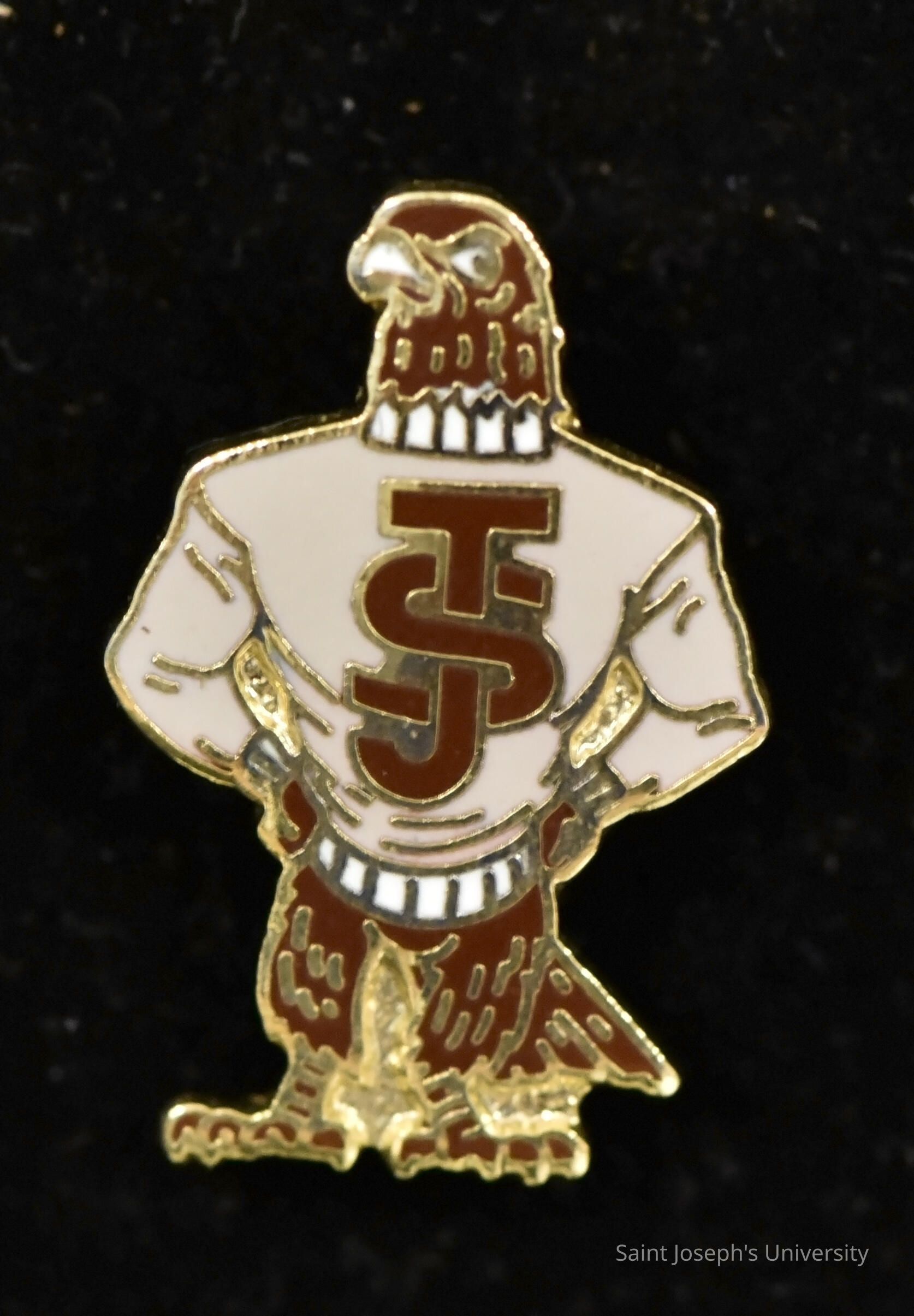 Small pin in the image of the Saint Joseph's Hawk with white sweater.