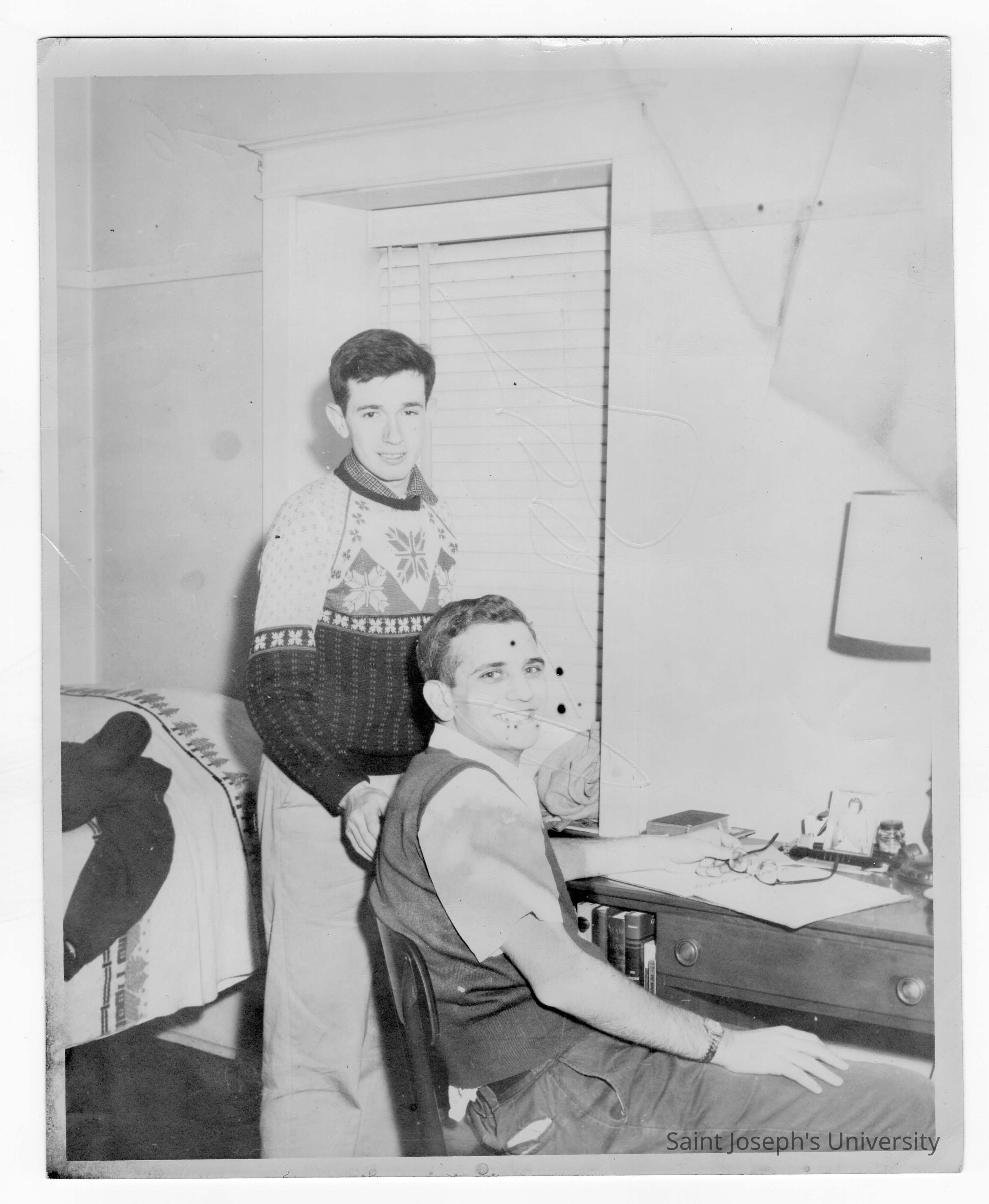 Students from Barry Hall studying in dormitory room.