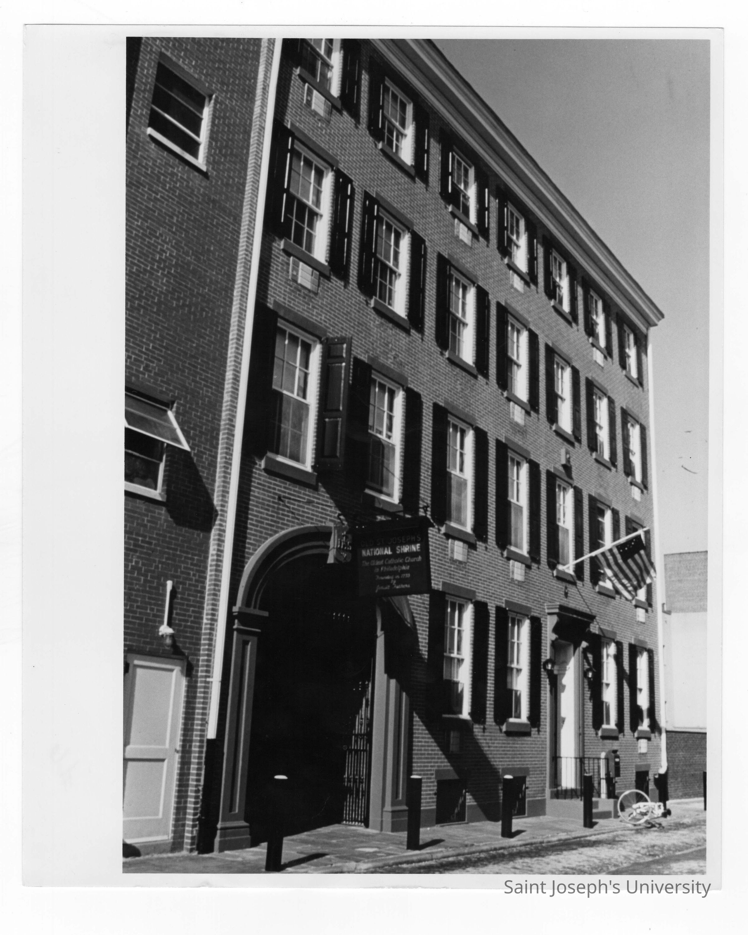 Front entrance to Old Saint Joseph's Church, Willing's Alley, Philadelphia.