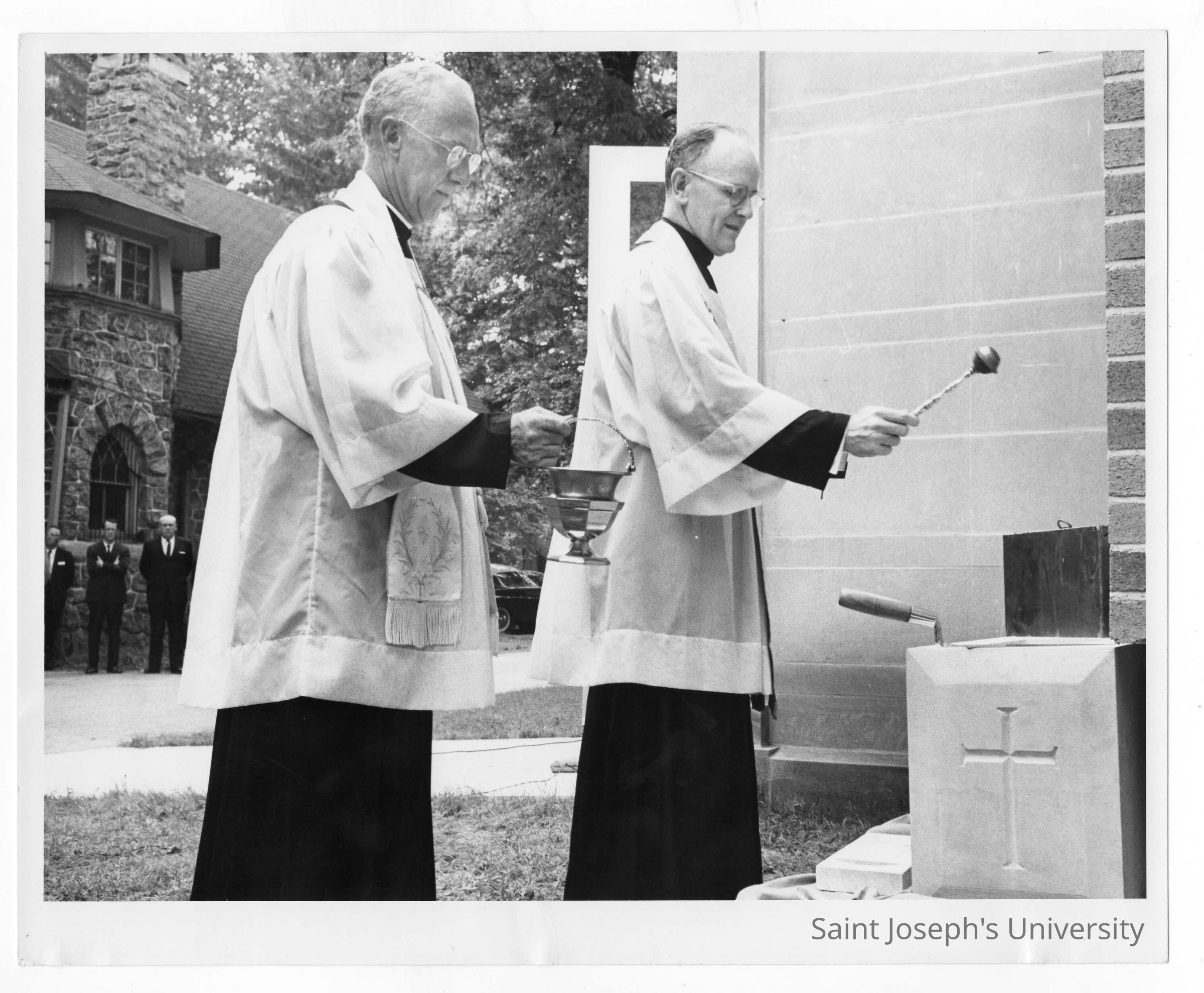 Laying and blessing of cornerstone of new Jesuit faculty residence with J. Joseph Bluett, S.J.