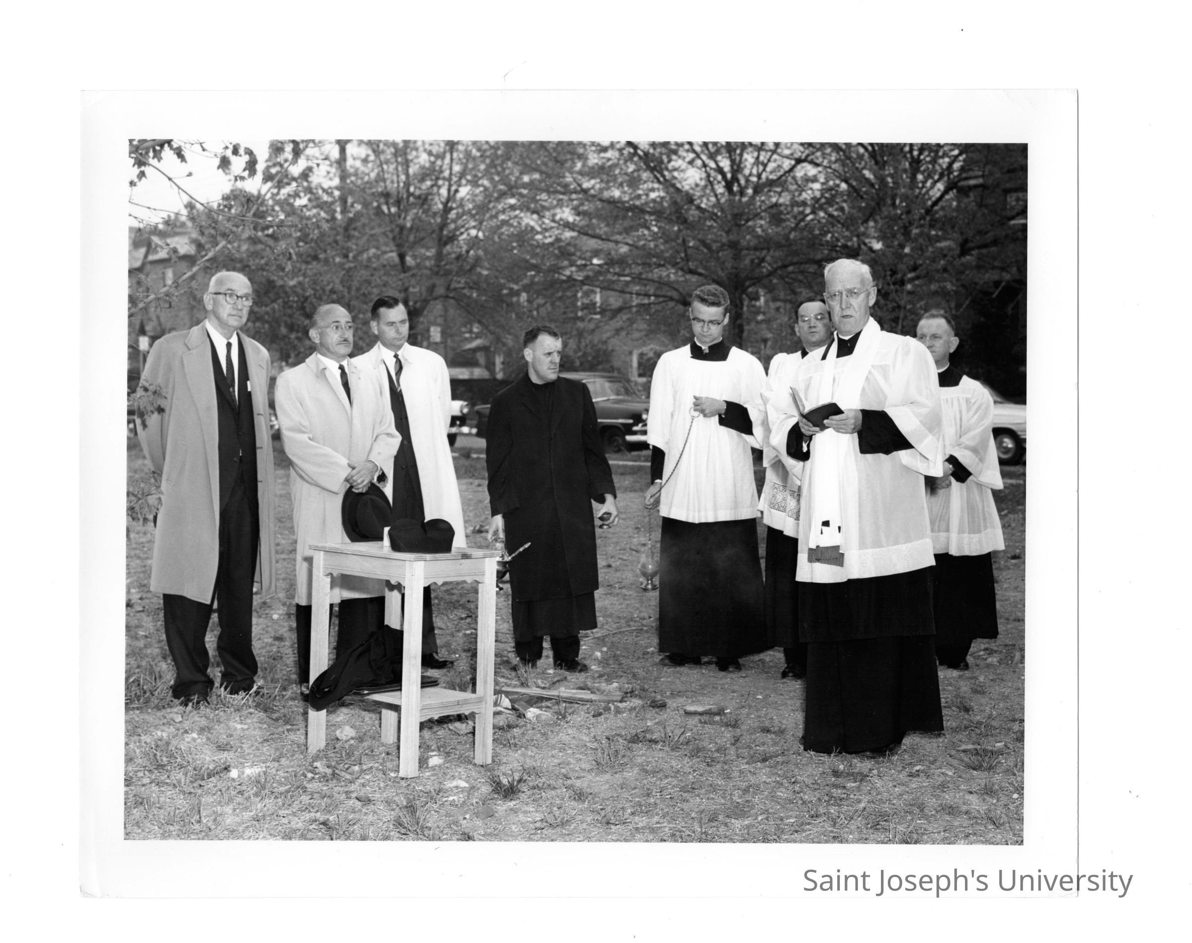 Villiger (later Post) Academy of Food Marketing groundbreaking with J. Joseph Bluett, S.J. and others.