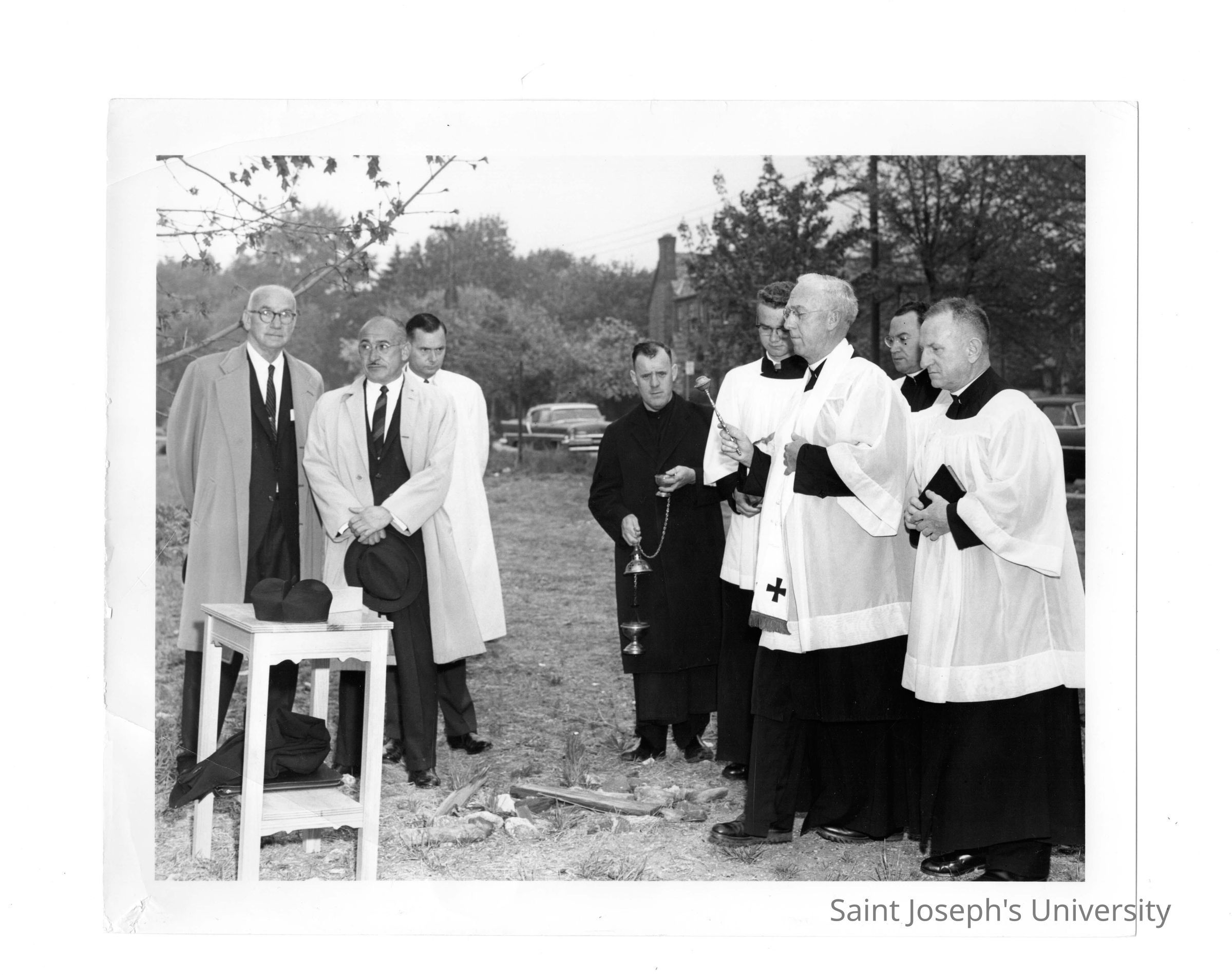 Villiger (later Post) Academy of Food Marketing groundbreaking with J. Joseph Bluett, S.J. and others.