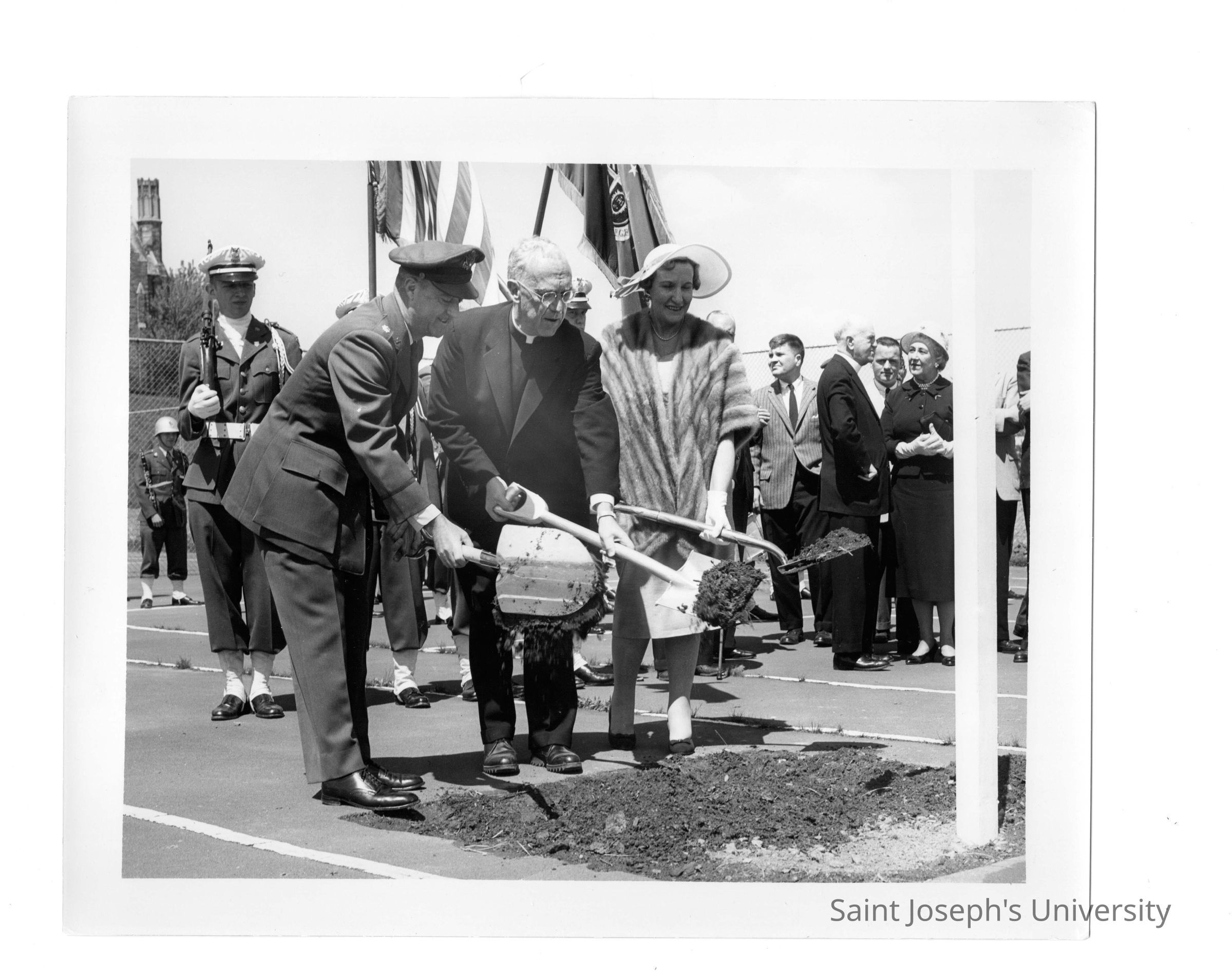 Villiger (later Post) Academy of Food Marketing groundbreaking with J. Joseph Bluett, S.J. and others.