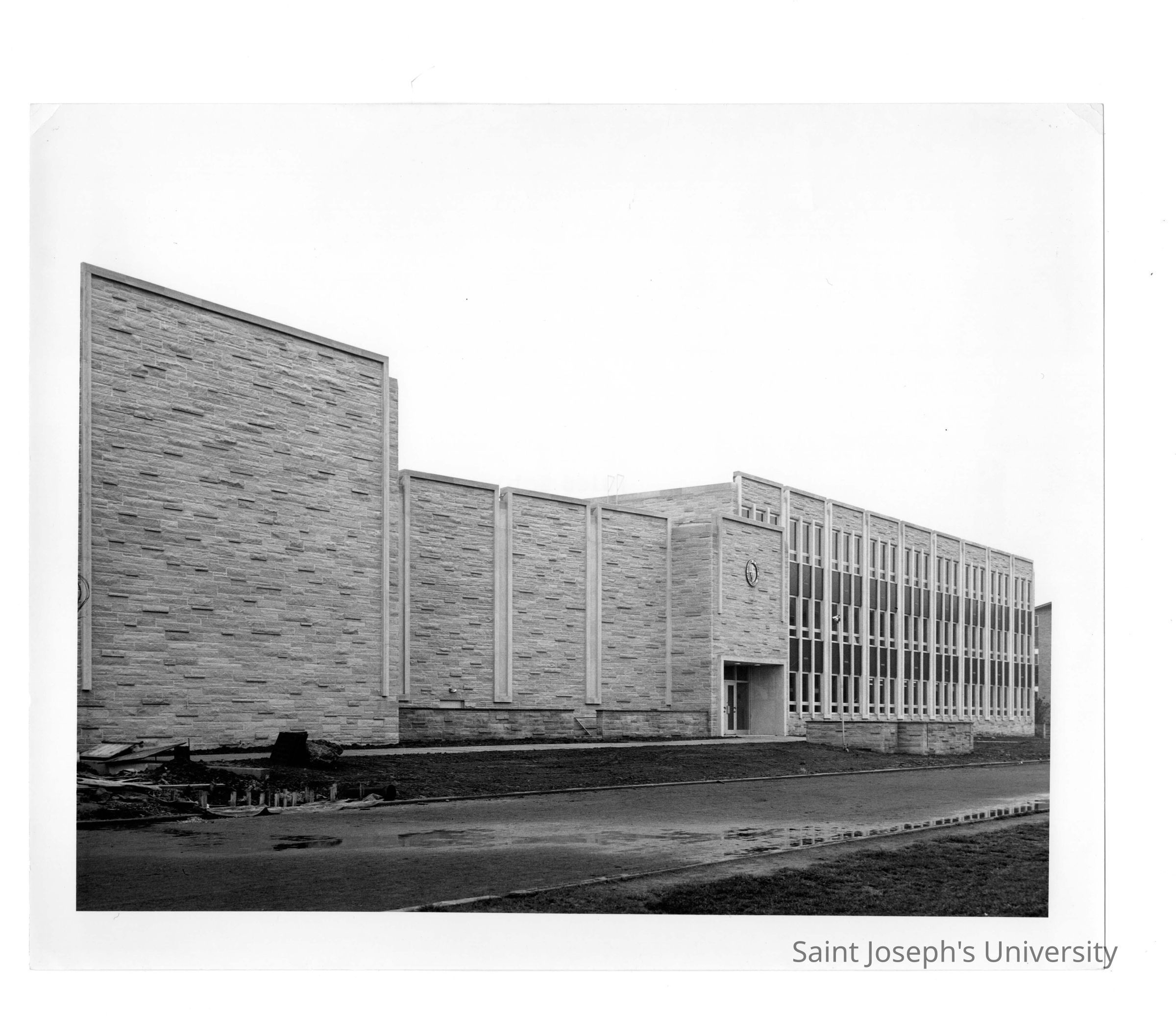 Exterior view of front of Villiger (later Post) Academy of Food Marketing near end of construction.