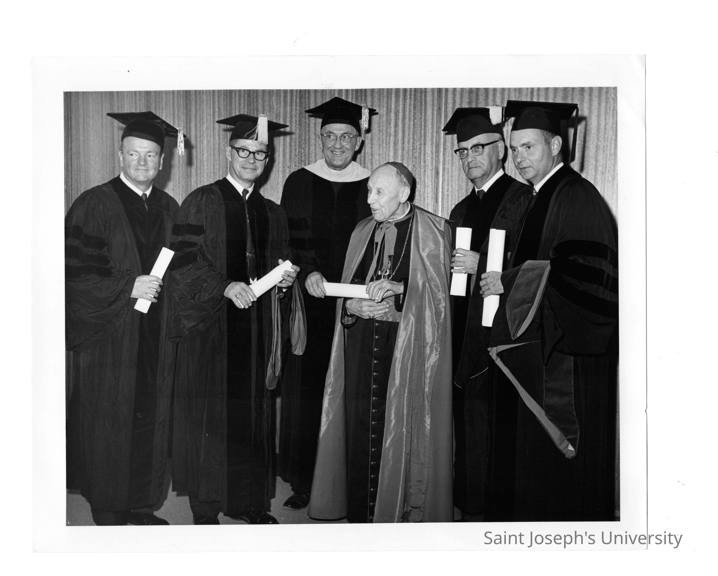 Convocation and dedication of Villiger (later Post) Academy of Food Marketing with William F. Maloney, S.J., Augustin Cardinal Bea, William B. Murphy and Theodore R. Gamble receiving honorary degrees,and Secretary of Agriculture Orville Freeman.Entry/Object ID