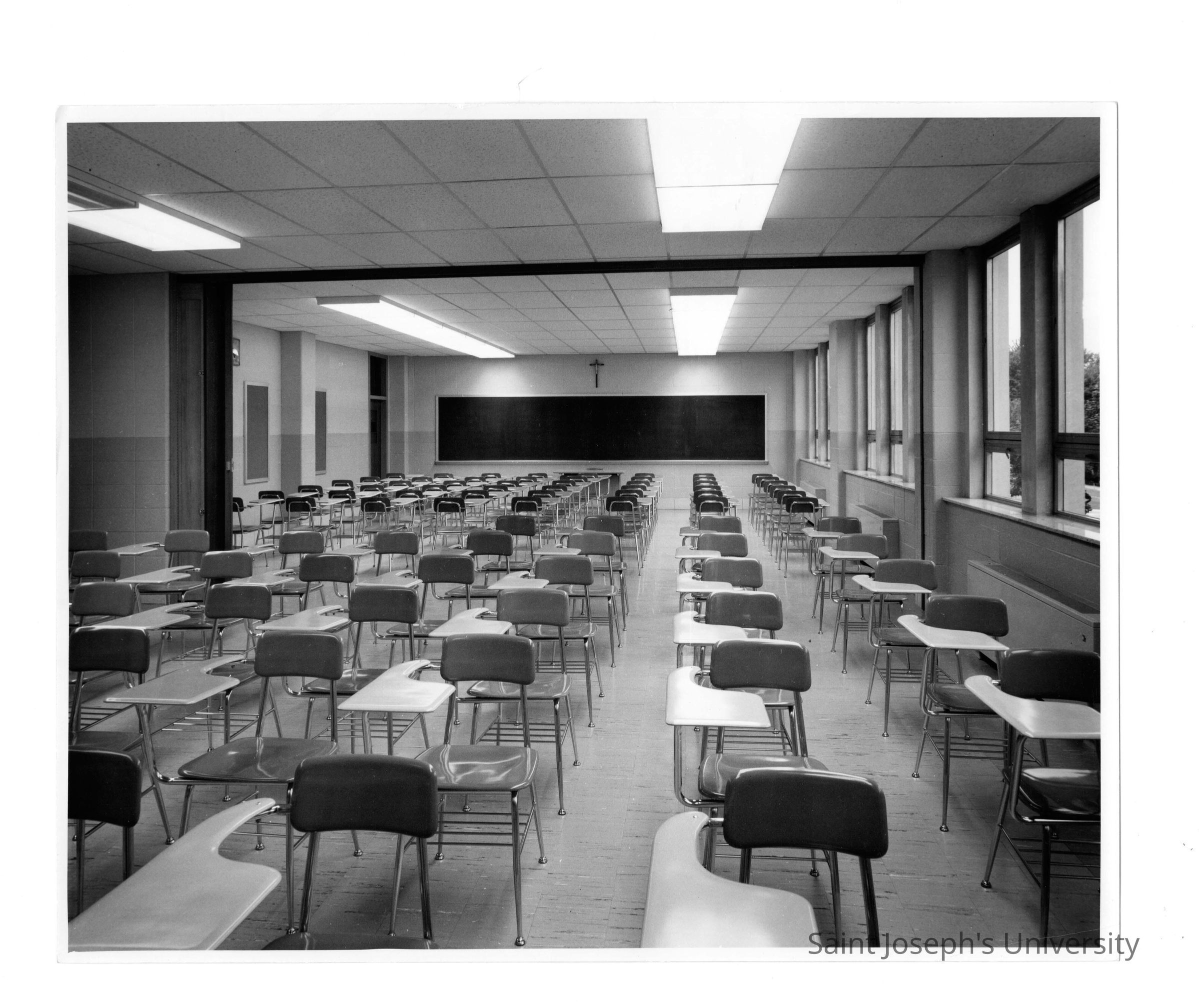 View of classroom with desks in Villiger (later Post) Academy of Food Marketing.