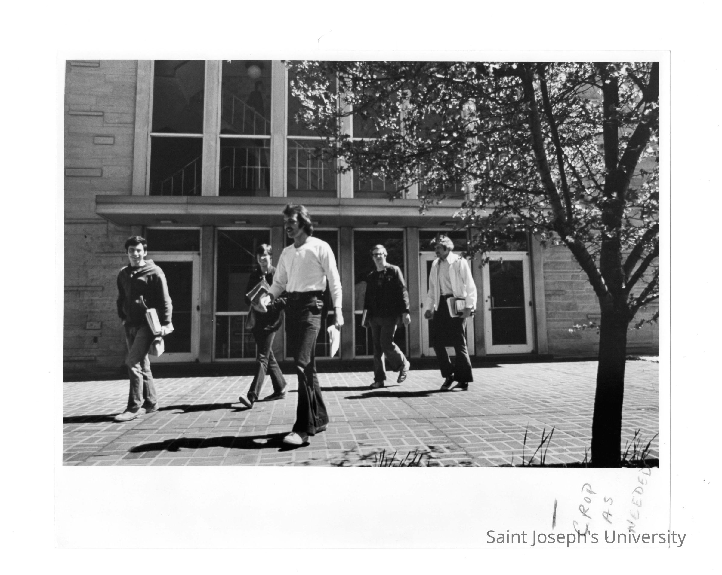 Students walking by side entrance of Villiger (later Post) Academy of Food Marketing.