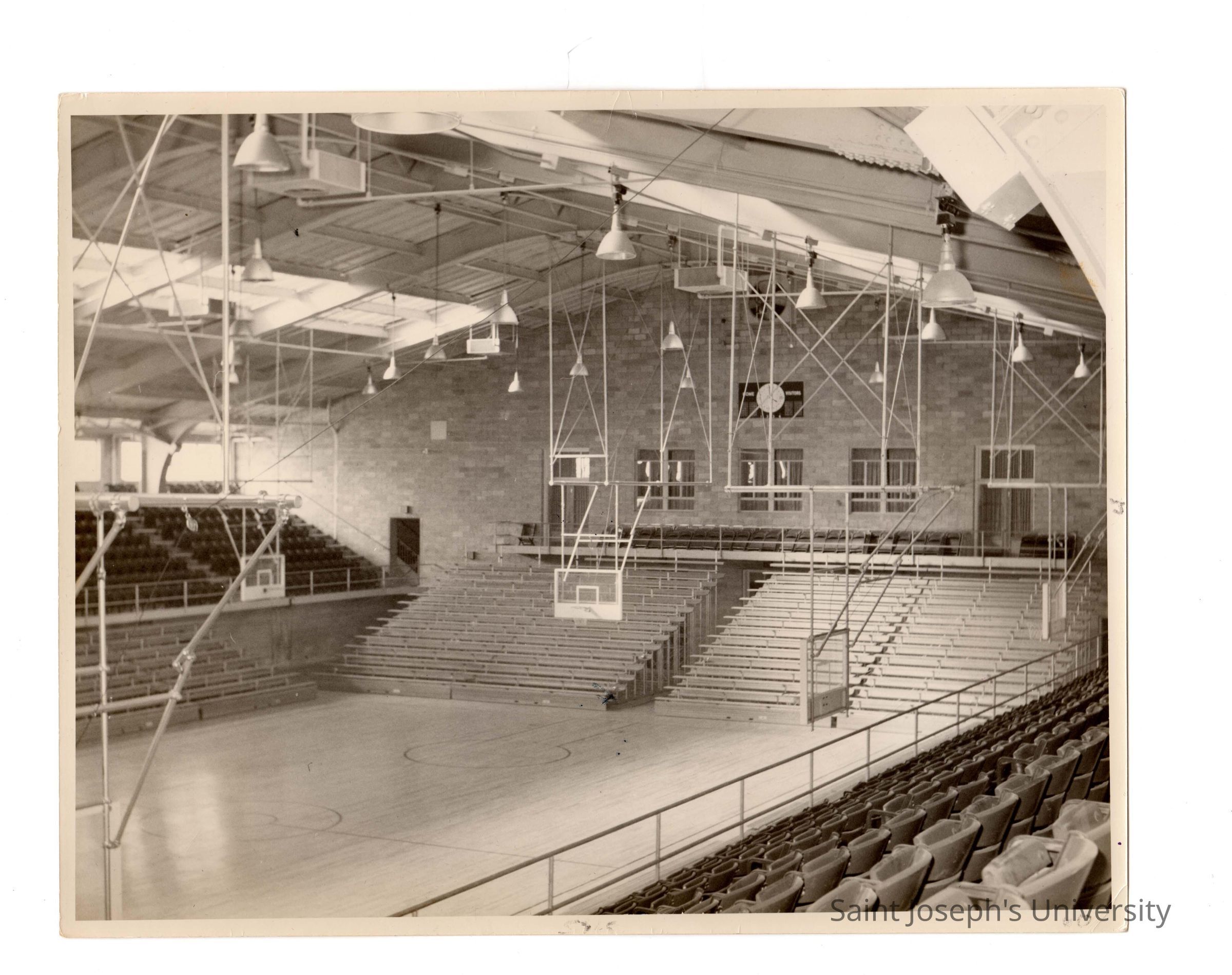 View of basketball court, bleachers and seating in new Field House (Sports Complex).