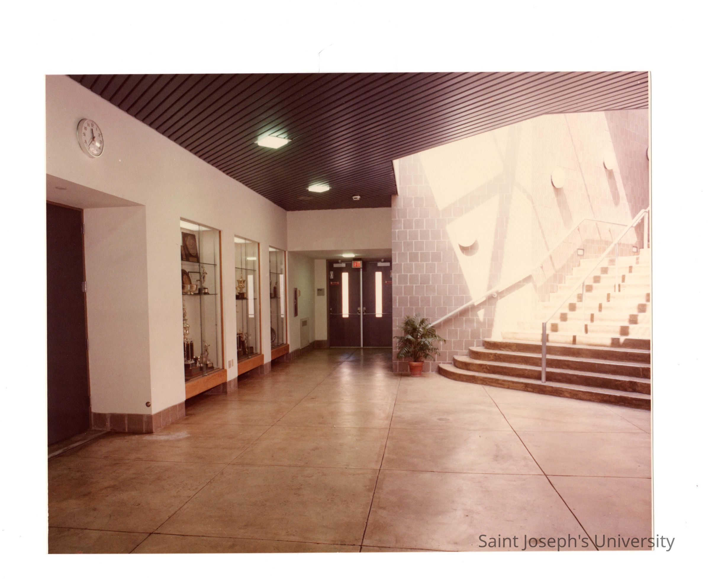 Hallway of Sports Complex (Field House) with trophy cases.