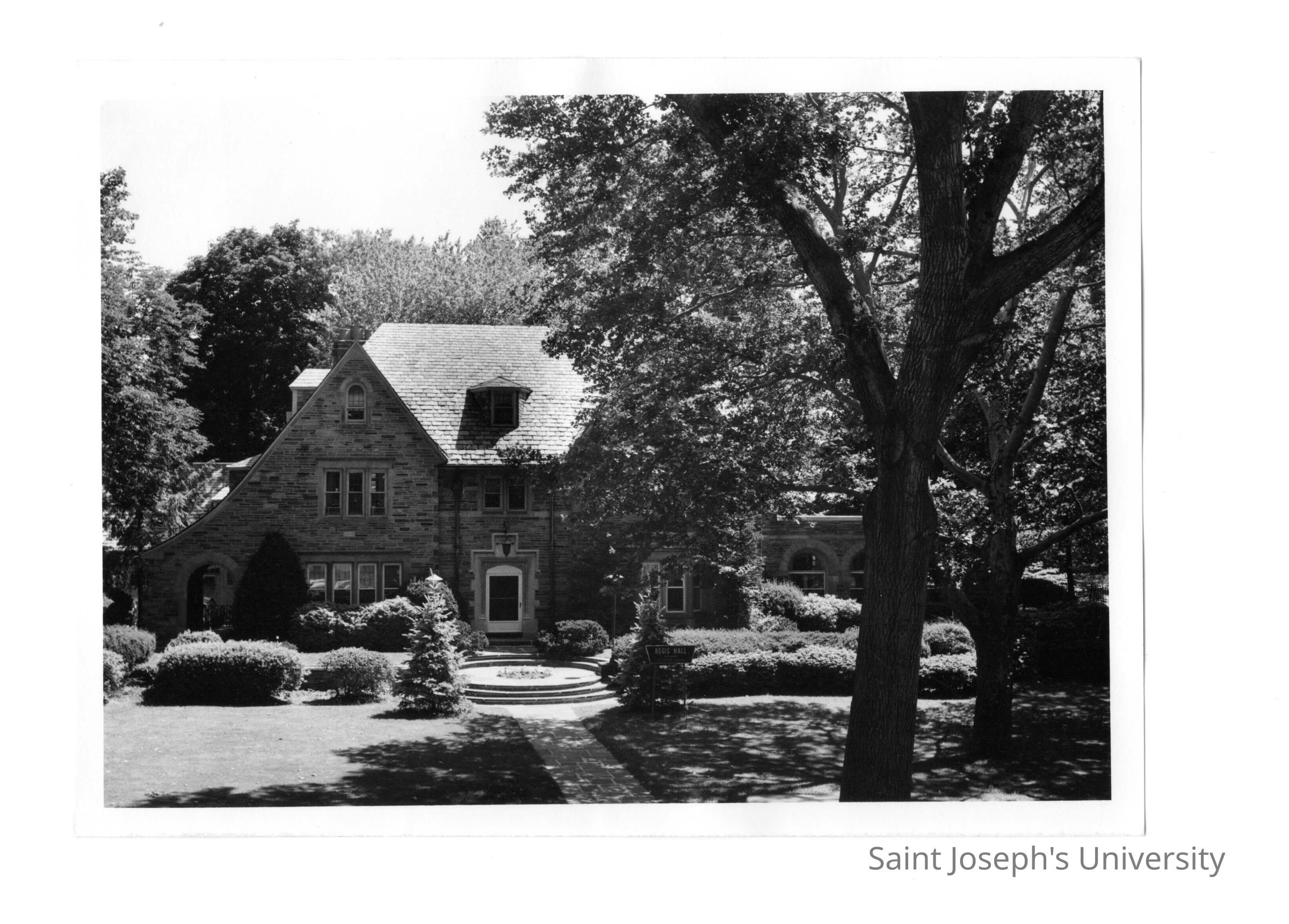 View of front of Regis Hall from Saint Thomas Hall in summer.