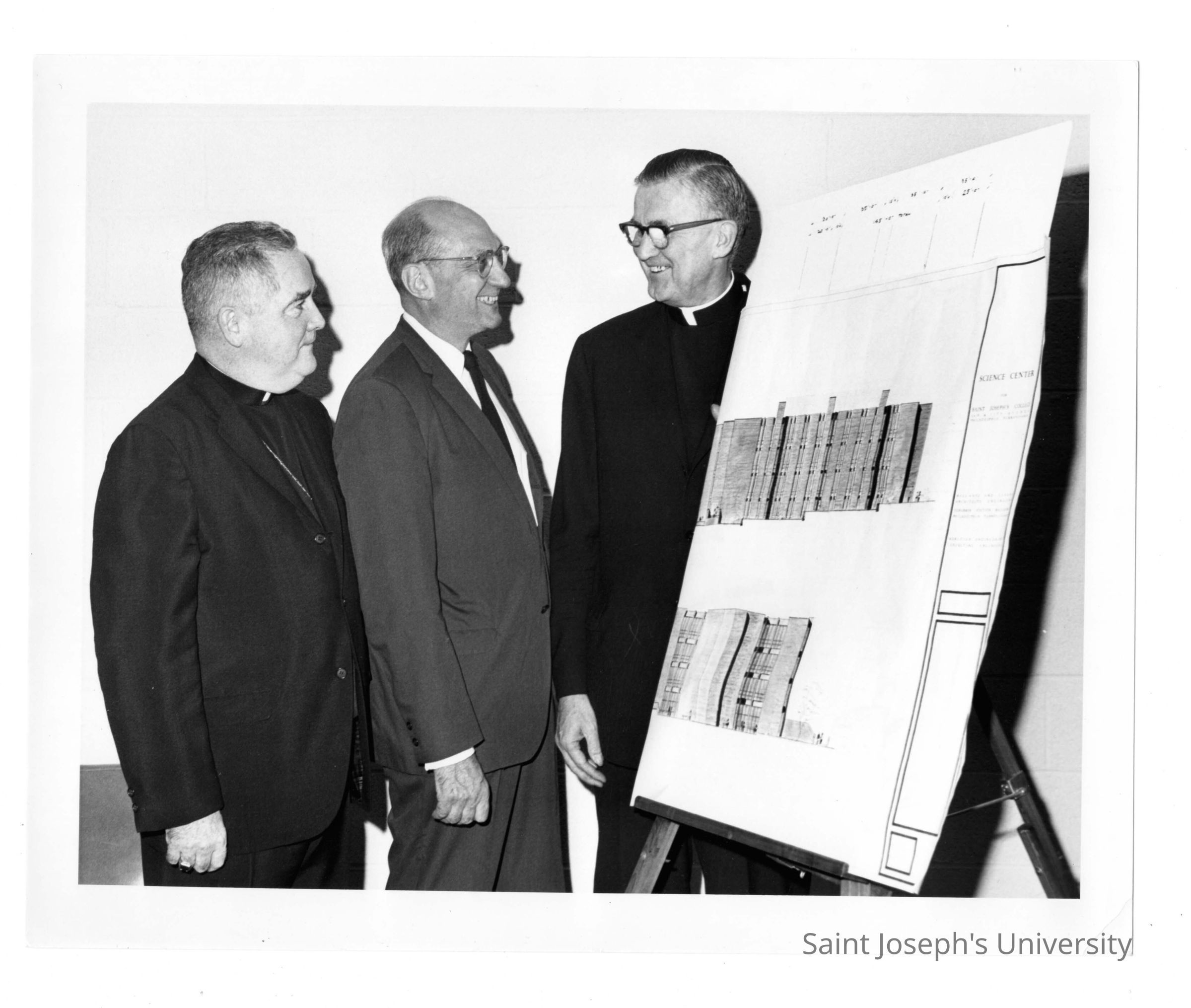 William F. Maloney, S.J. and others discussing plans for new science center.