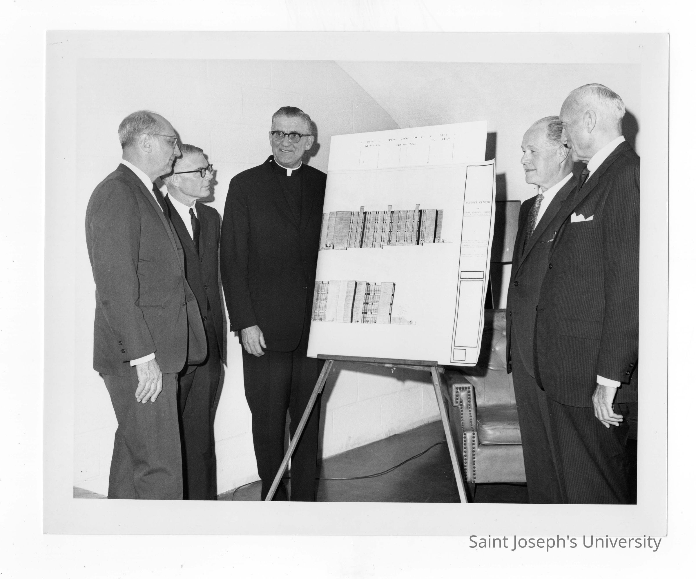 William F. Maloney, S.J. and others discussing plans for new science center.