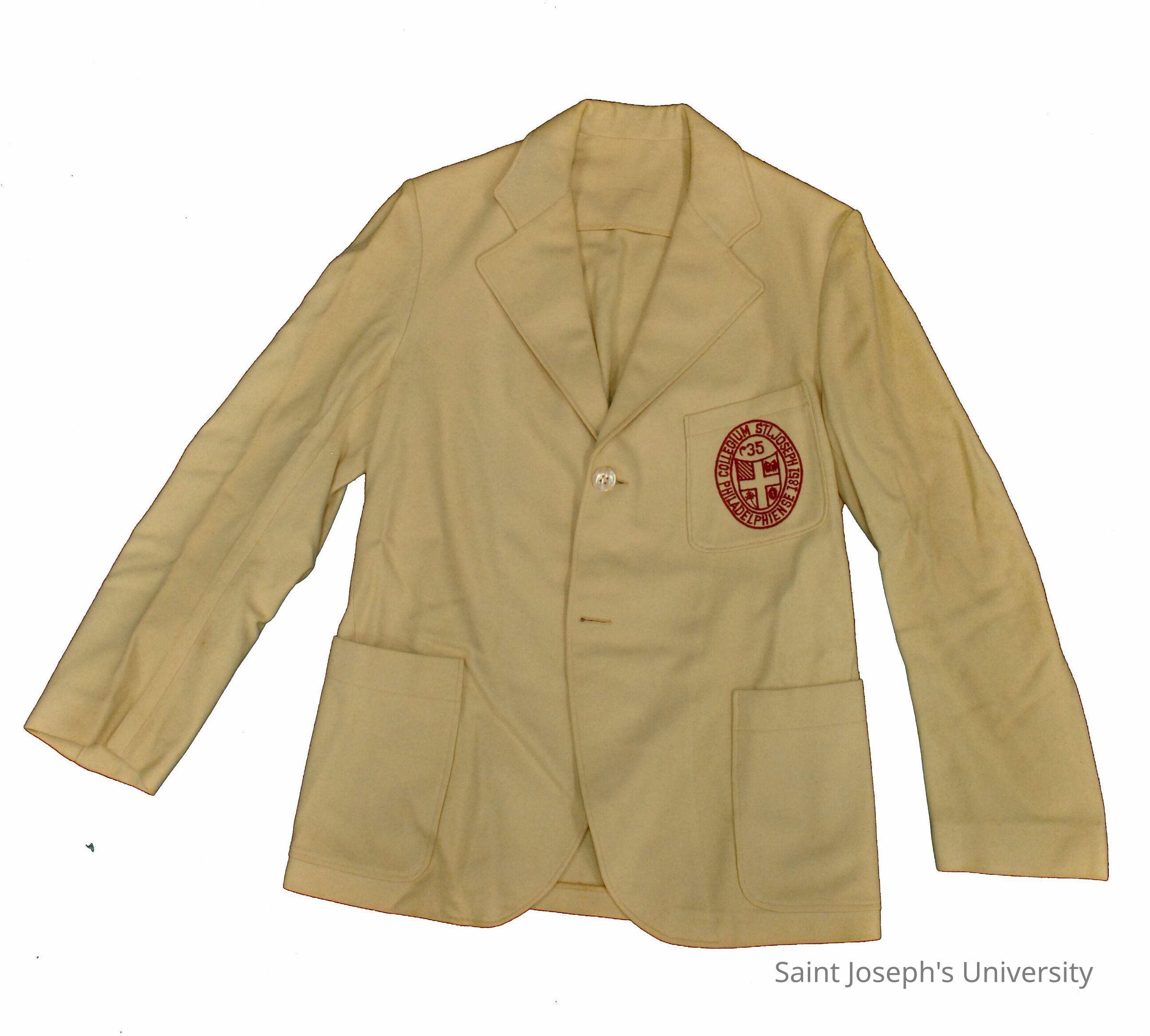 Cream colored blazer with the SJC seal and the year "'35" on the left breast pocket. Also side pockets. No label.